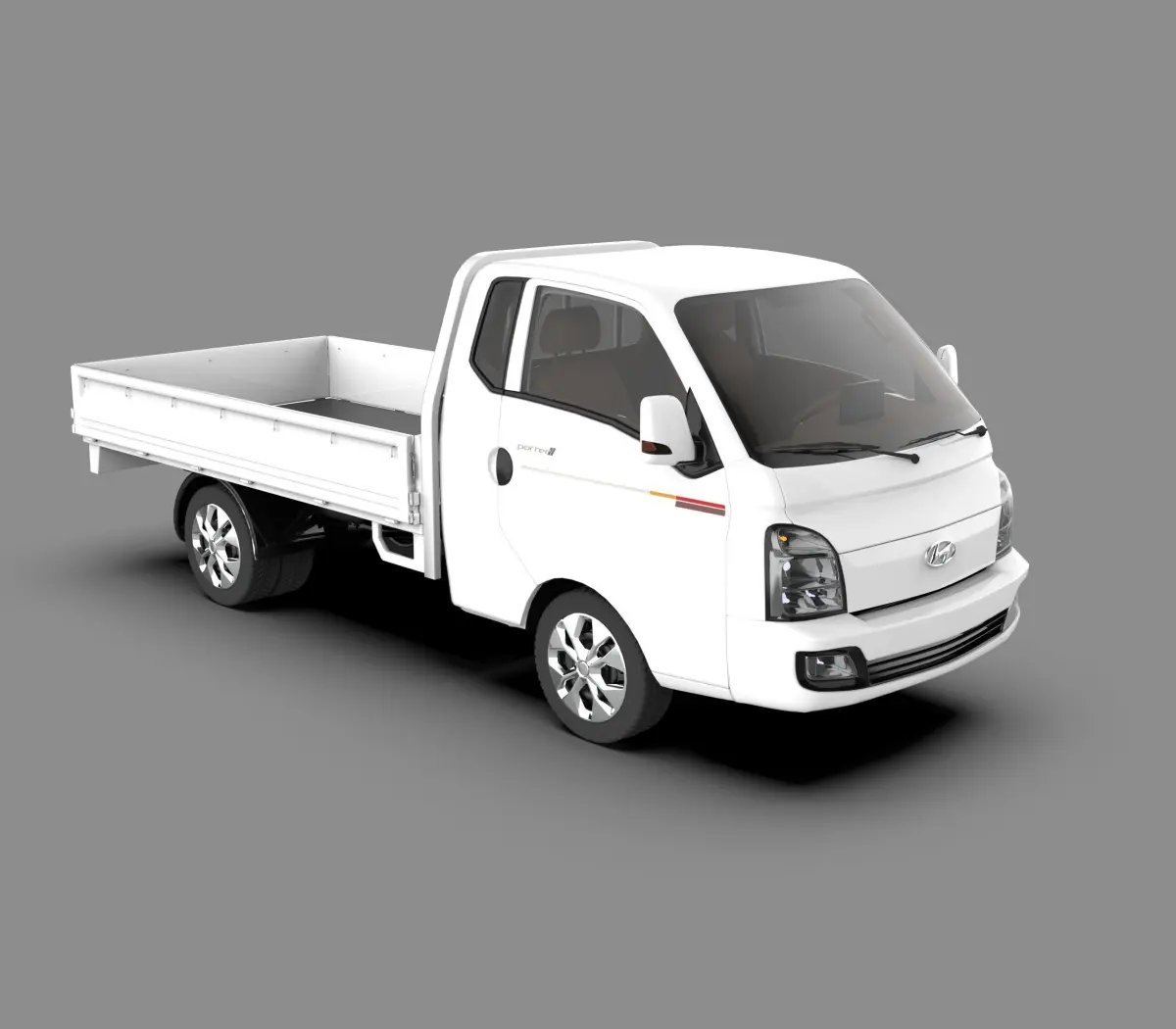 Highly detailed 3D model of the Hyundai Porter II Cargo Truck, a compact and reliable light-duty commercial vehicle widely used in urban logistics and small business deliveries. Features accurate exterior design, realistic proportions, and cargo bed details. Ideal for transportation simulations, city scenes, and commercial vehicle visualizations. Optimized for rendering and game development.