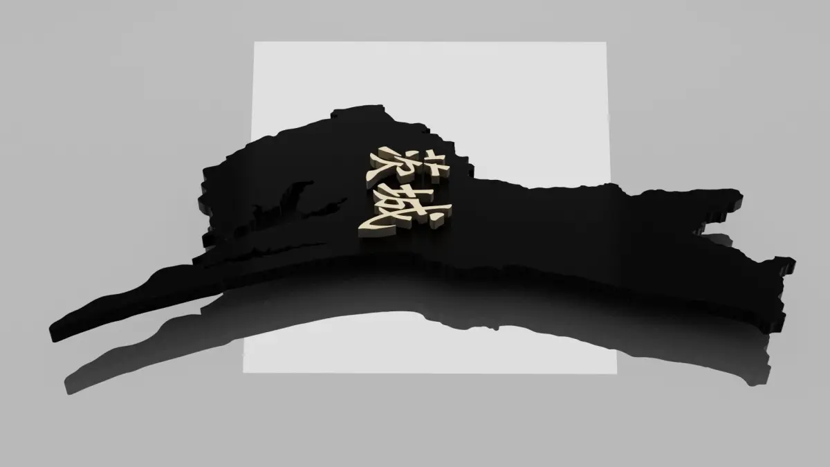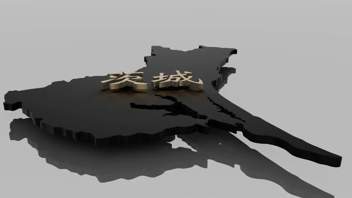** Lights and shaders are just showed in the image. Original file will only contain black shader for map and gold shader for words**Realistic 3D Ibaraki map model (Arnold)