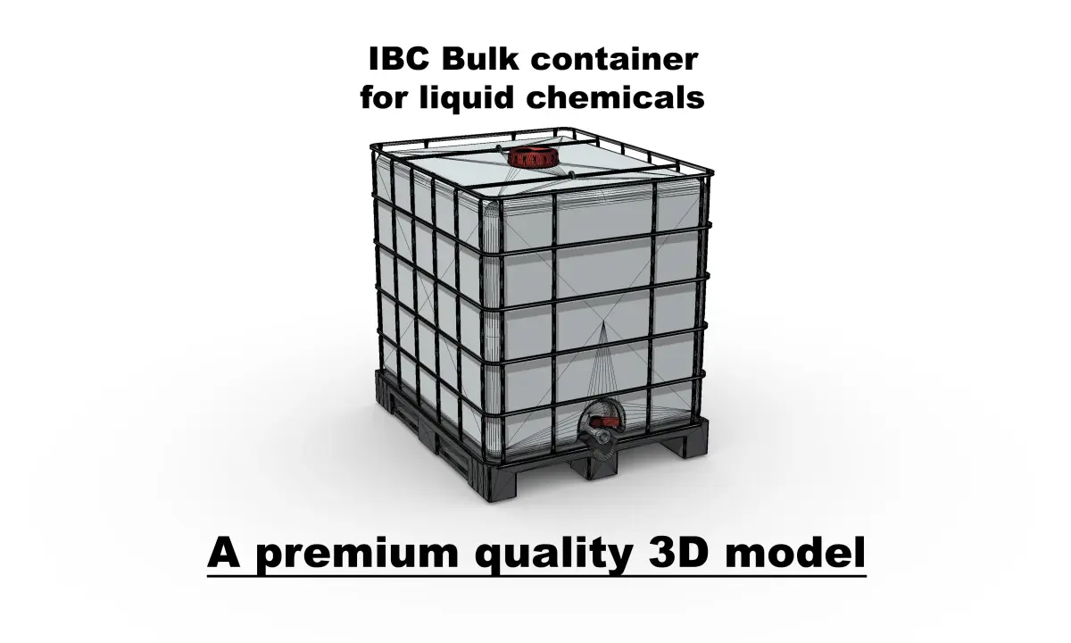 Introducing our cutting-edge digital product: a meticulously crafted 3D model of an IBC (Intermediate Bulk Container) designed specifically for the safe storage and transport of liquid chemicals. This highly detailed 3D model is a game-changer for professionals across a spectrum of industries, including chemical manufacturing, logistics, and product design.