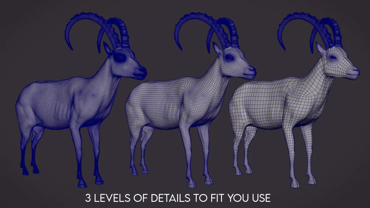 - Three LODs for the body and two LODs for the horns for optimized performance.