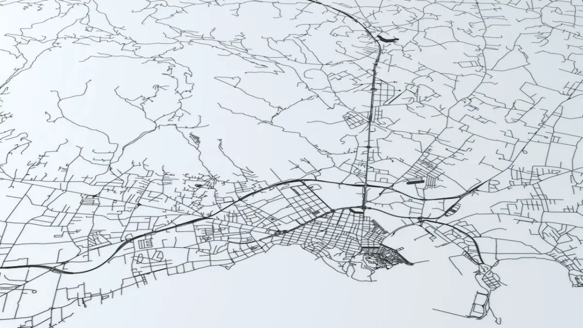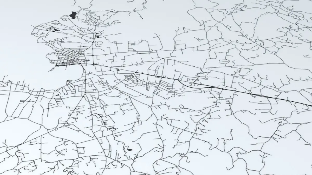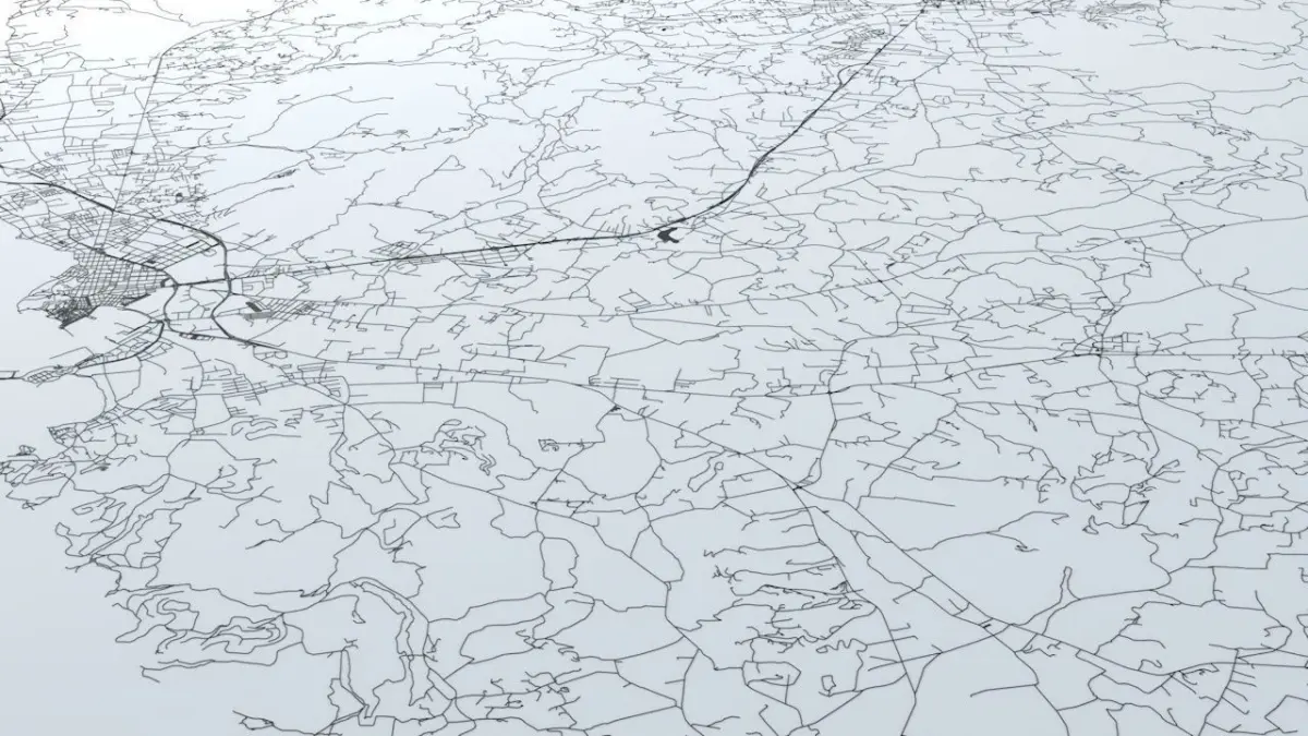 - the model is positioned on a flat surface (road network is on the “floor” - no elevation data included)