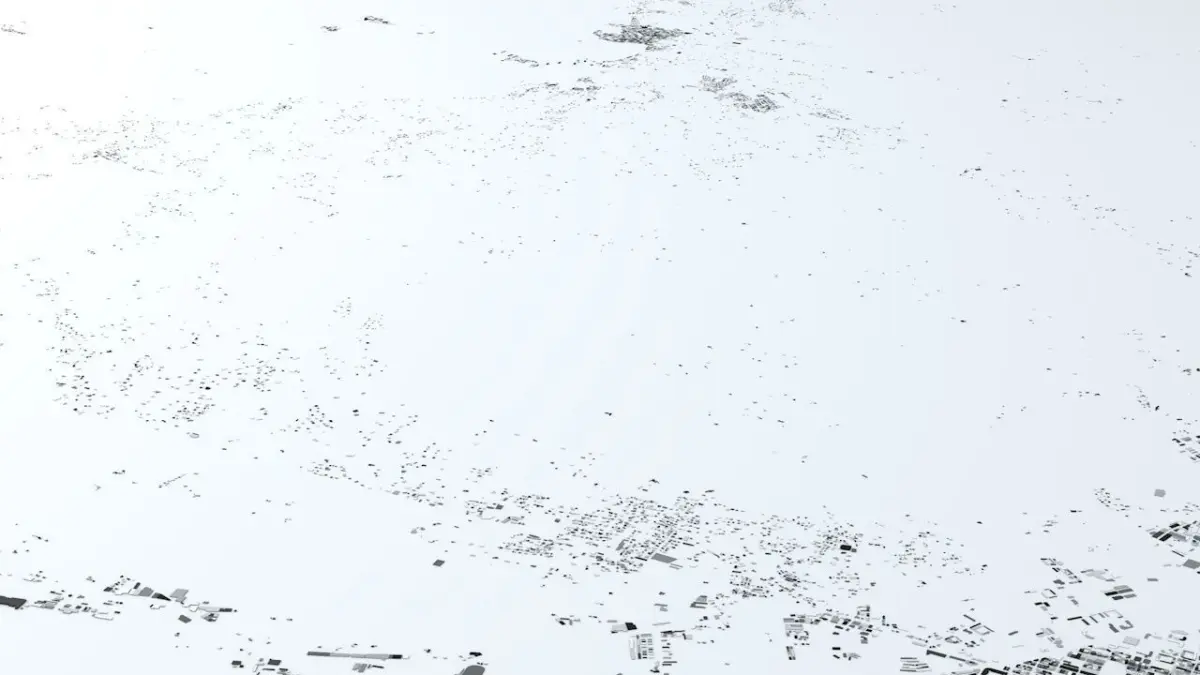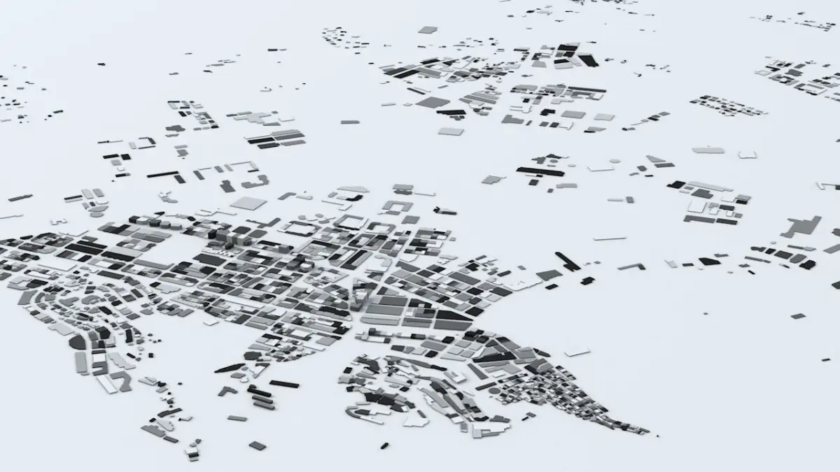 - the model is positioned on a flat surface (all buildings are on the “floor” - no elevation data included)