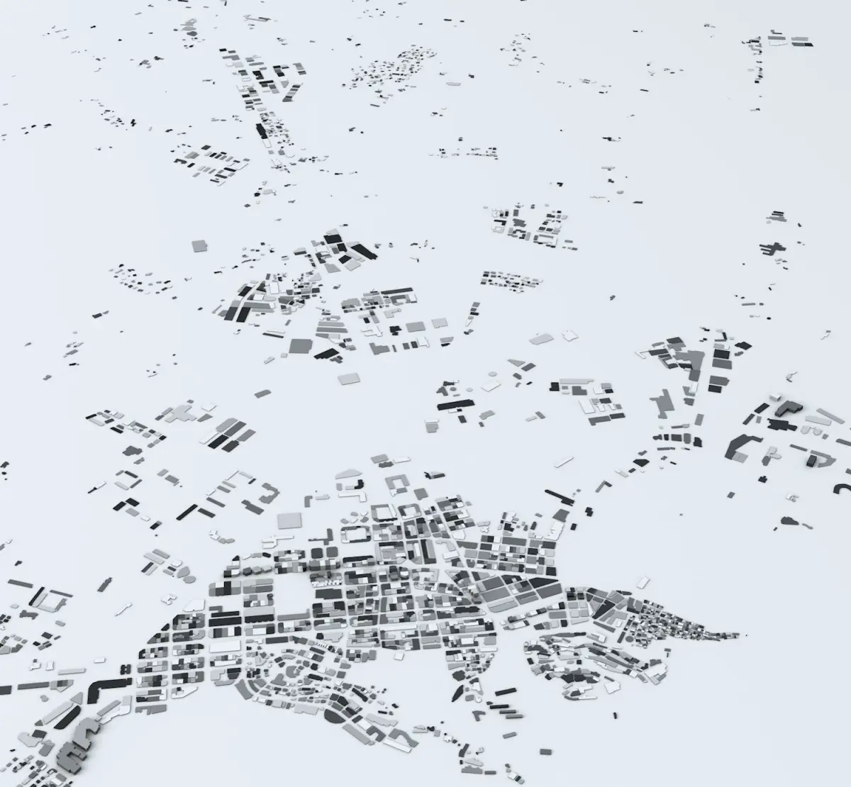These models are designed to show and present the city/area in the title in a minimalistic concept. They show a close to exact streets and buildings alignments and building heights (excluding parts where there is no or insufficient data to build 3d geometry) therefore they can be used for many purposes but they are not designed to build ie. high precision urbanscape.