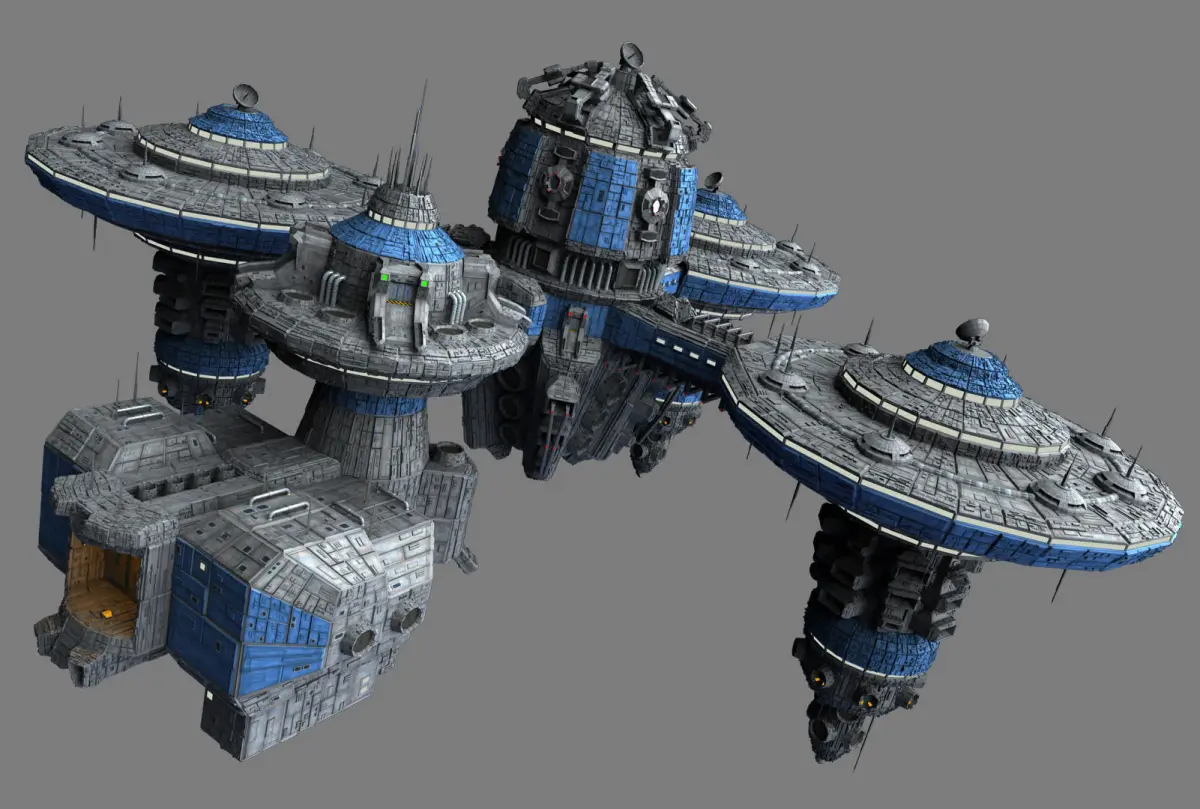The station is complete with textures and the main color scheme can easily be changed. 2 Colour variants included Red and Blue. The orbital is complete with many details such as satellite dishes, Gravity Stabilisers, and other decors with the Unique used grunge style.