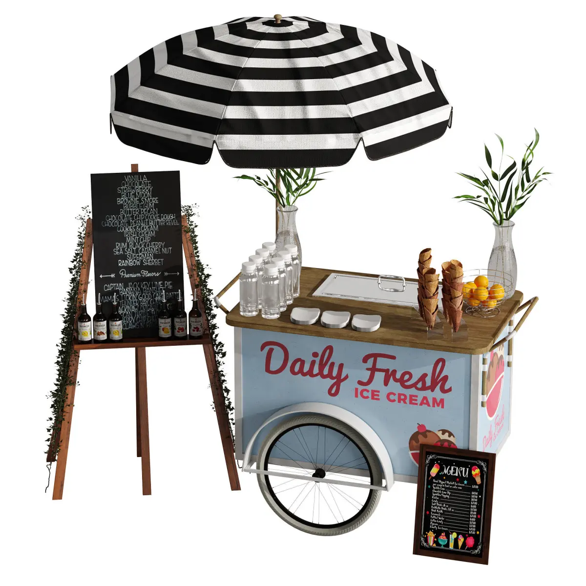 Name: 01_mini_cart_iceCream_2Version: 2014Preview: NoUnits: CentimetersDimension: 255.81 x 179.61 x 241.27Polys: 410461XForm: YesBox Trick: YesModel Parts: 14Render: Corona+VrayFormats: 3Ds Max 2014, OBJ, FBX