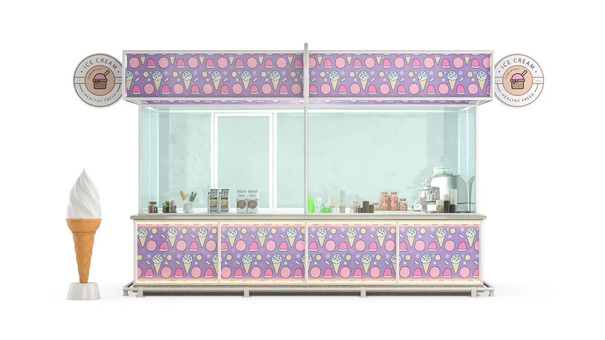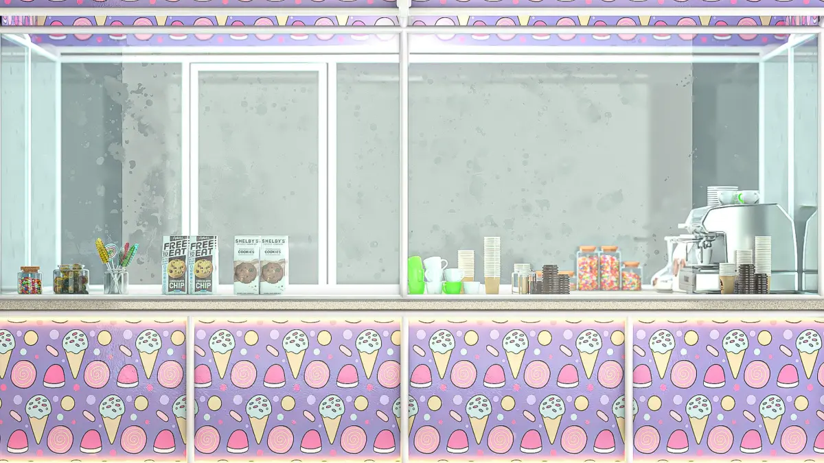 Ice Cream Shop, with Coffee Machine and Filled Shelf.