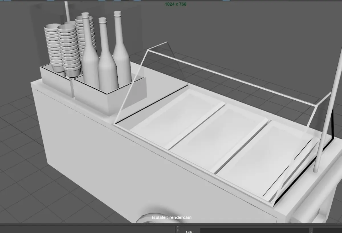This is a low poly model, an ice cream cart with a roof. Texture: glass, plastic, metal texture resolution 4096-4096 Polygons: 5451 Vertices: 5584 including fbx, mb, ma, obj created in autodesk maya 2019