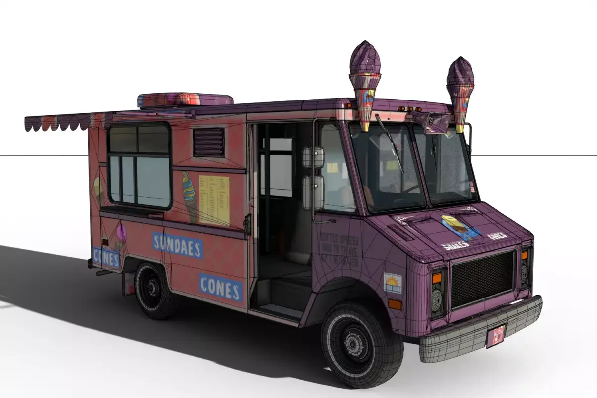 Colorful decals and textures for an authentic ice cream truck look