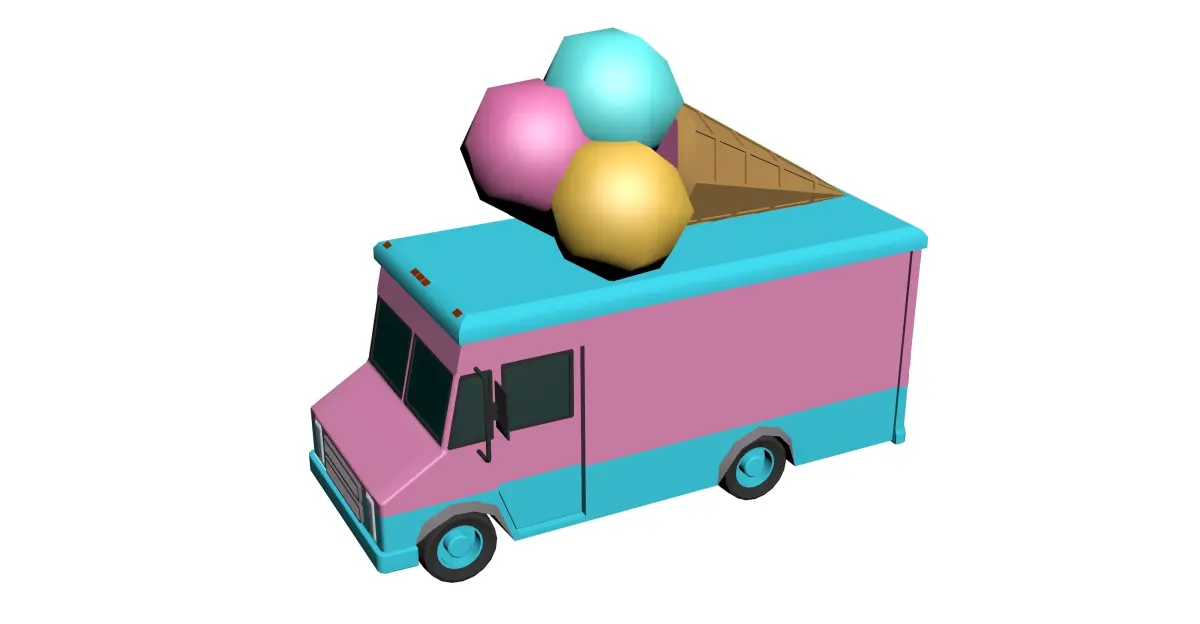 Ice cream truck. Low-poly 3D model, Hypercasual Model. Has materials ID