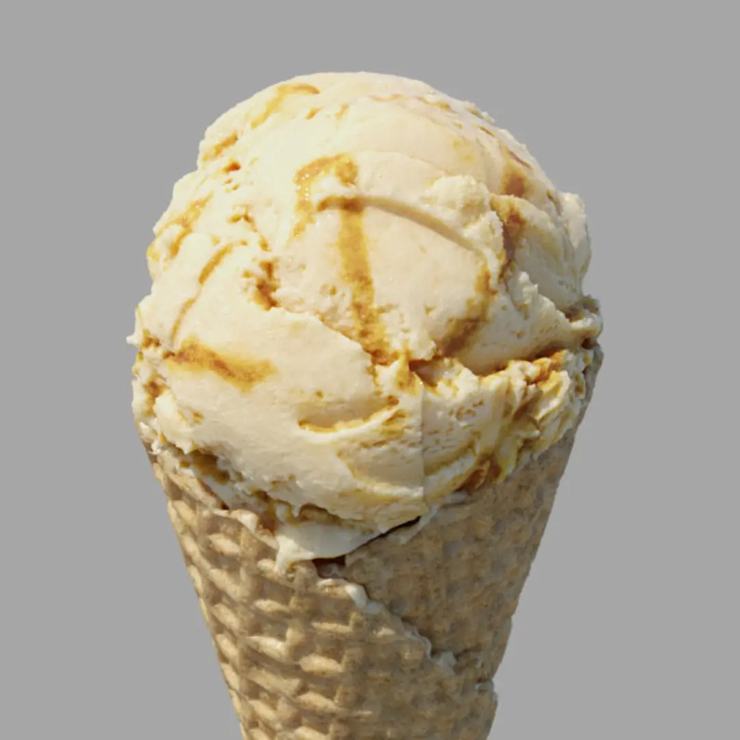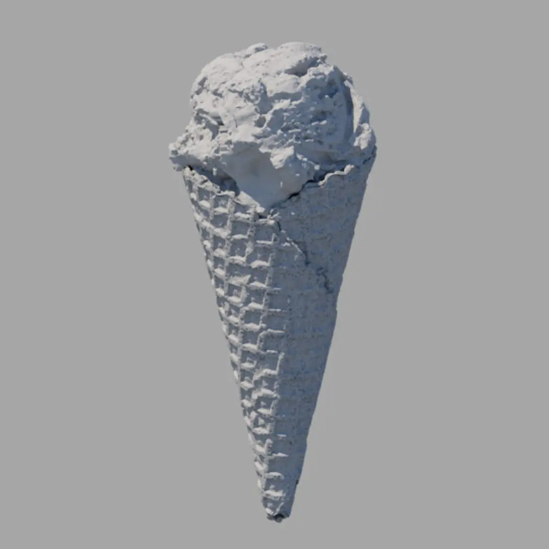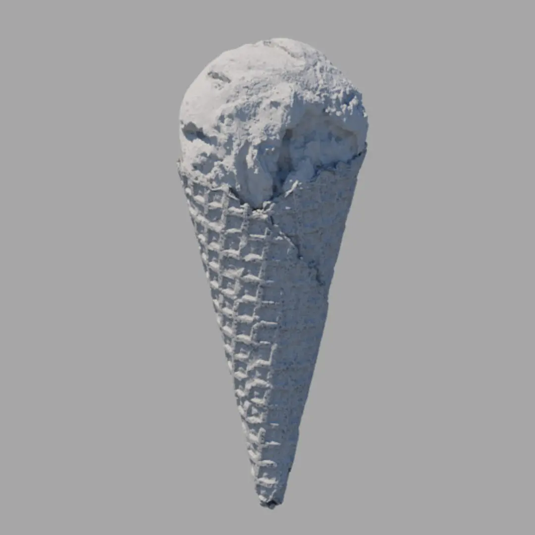 Lattice deformers are in the Maya file to fit the scoop into the cone, otherwise baked in the other formats.