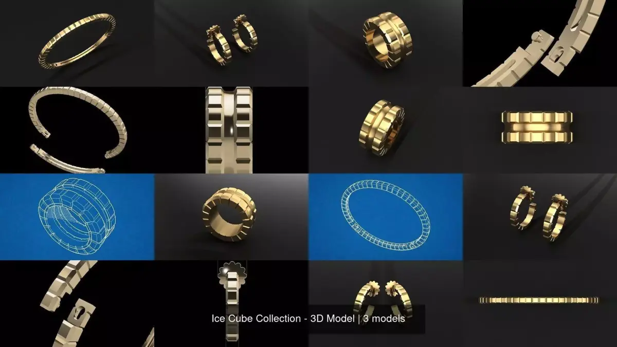 Discover the exquisite Ice Cube collection by Chopard, a perfect blend of contemporary design and timeless elegance. This exclusive 3D model set features the signature pieces of the collection — a bracelet, pendant, and earrings — each crafted to embody the iconic geometric cube motif inspired by the purity and brilliance of ice.