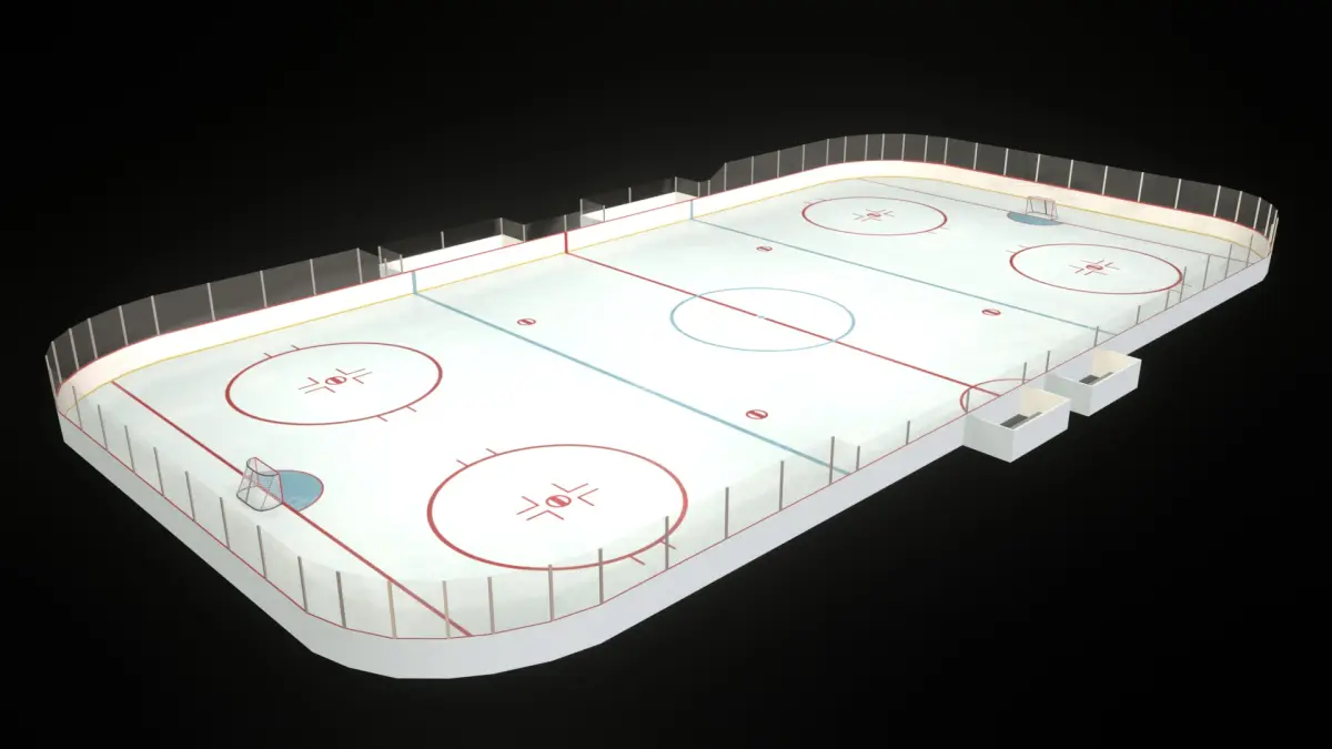This is a realistic, low-poly 3D model of an ice hockey rink, designed to scale and optimized for real-time rendering in games or simulations. The model features hand-painted PBR textures created using Blender and Affinity Photo, ensuring a unique and visually appealing finish.