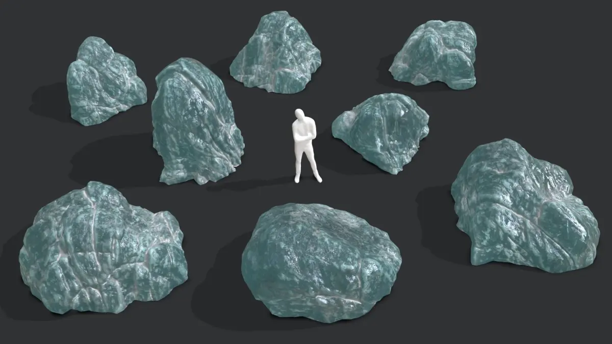 This game ice stone assets of 8 different rocks including 4 LODs each to get the best optimization and the best quality. Those 8 models are ground rocks and are all of them opened on the base to be dropped on the ground.