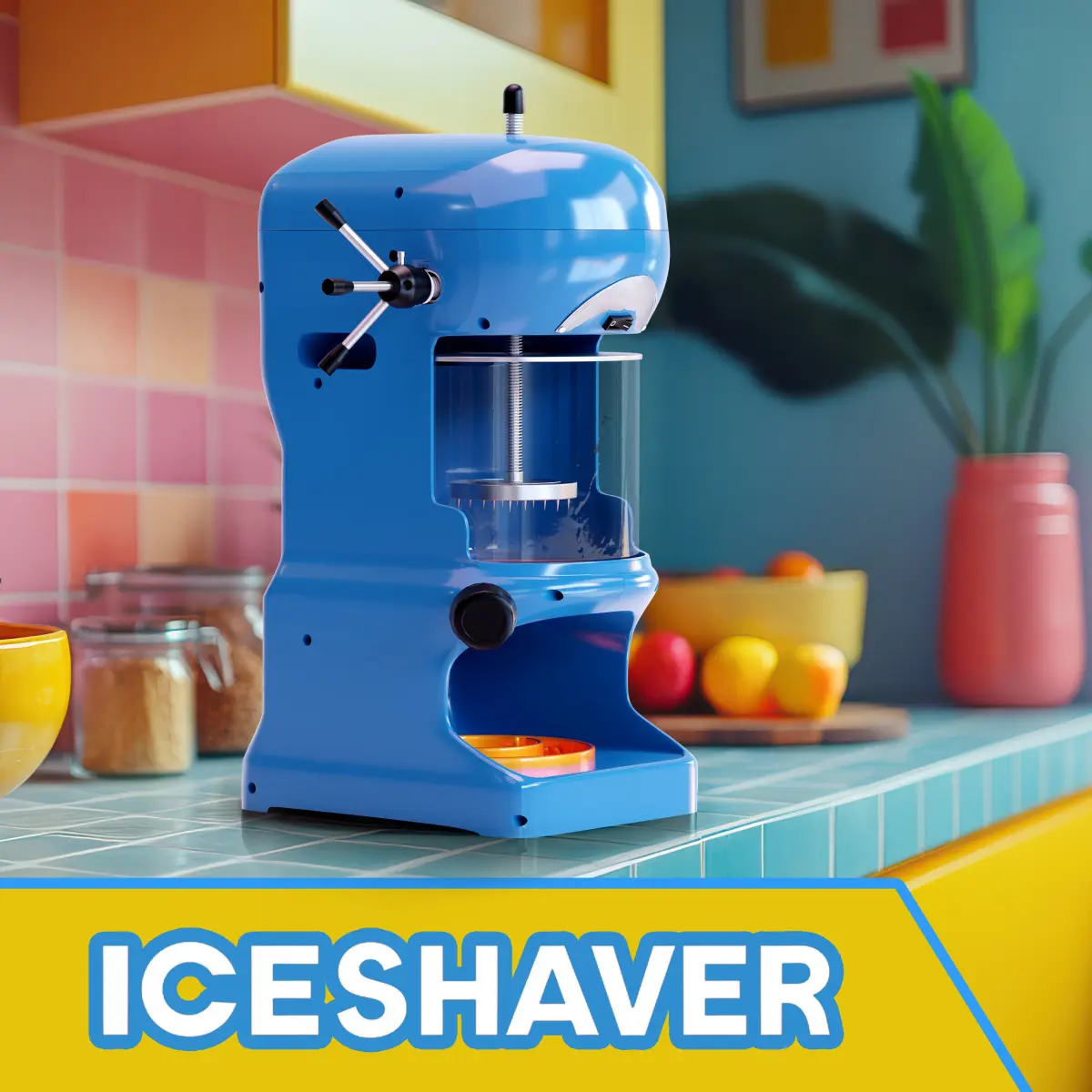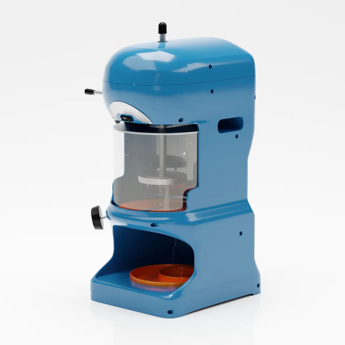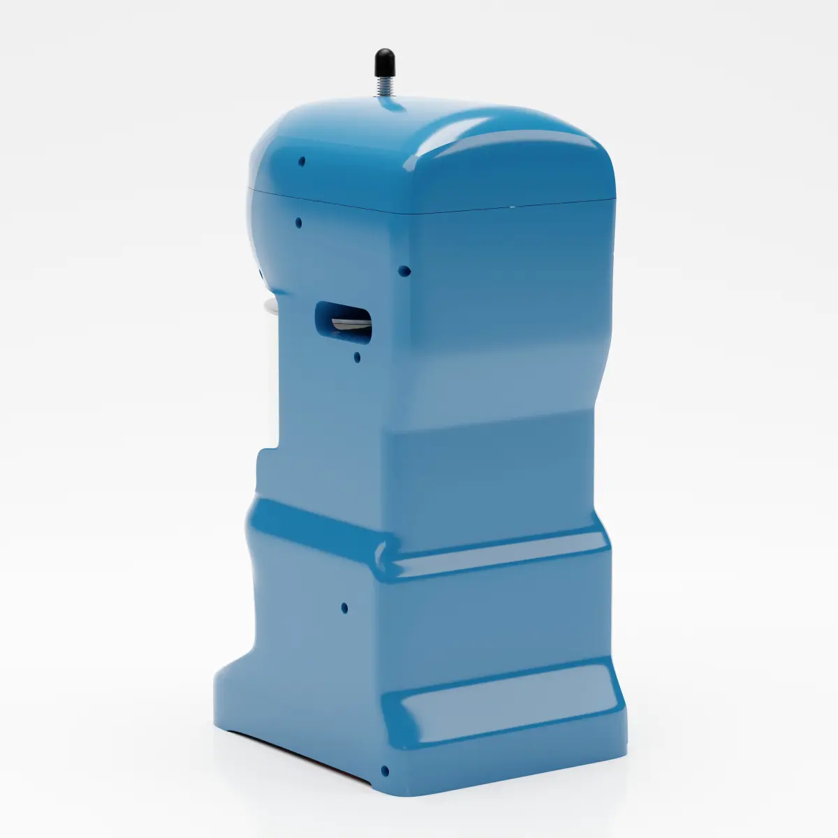 This 3D model showcases a vintage-style electric ice shaver machine, perfect for adding a nostalgic touch to your digital projects. Featuring a sleek exterior and container to view the ice shaving process, this model is highly detailed and visually appealing. Ideal for use in 3D visualizations, animations, and game environments.