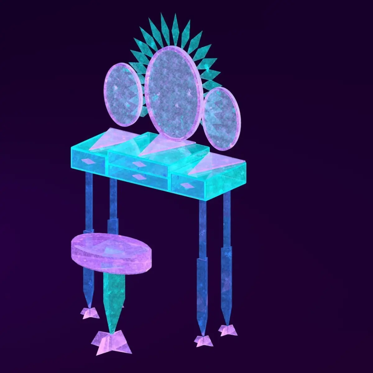 - Majestic Vanity Set: Complete with an elegant mirror and a cushioned stool, adorned with ice crystal accents.