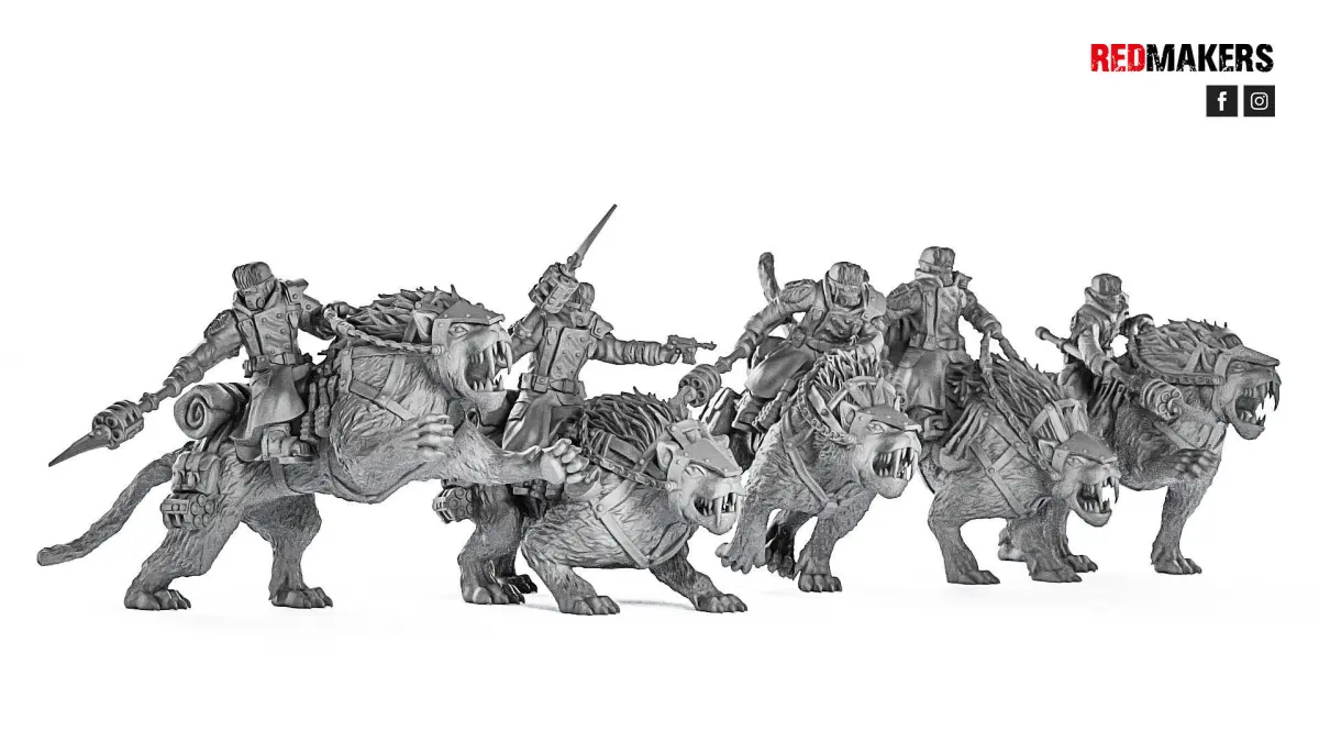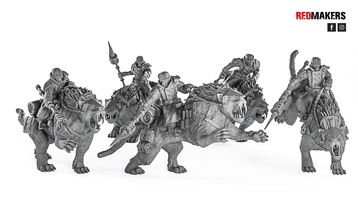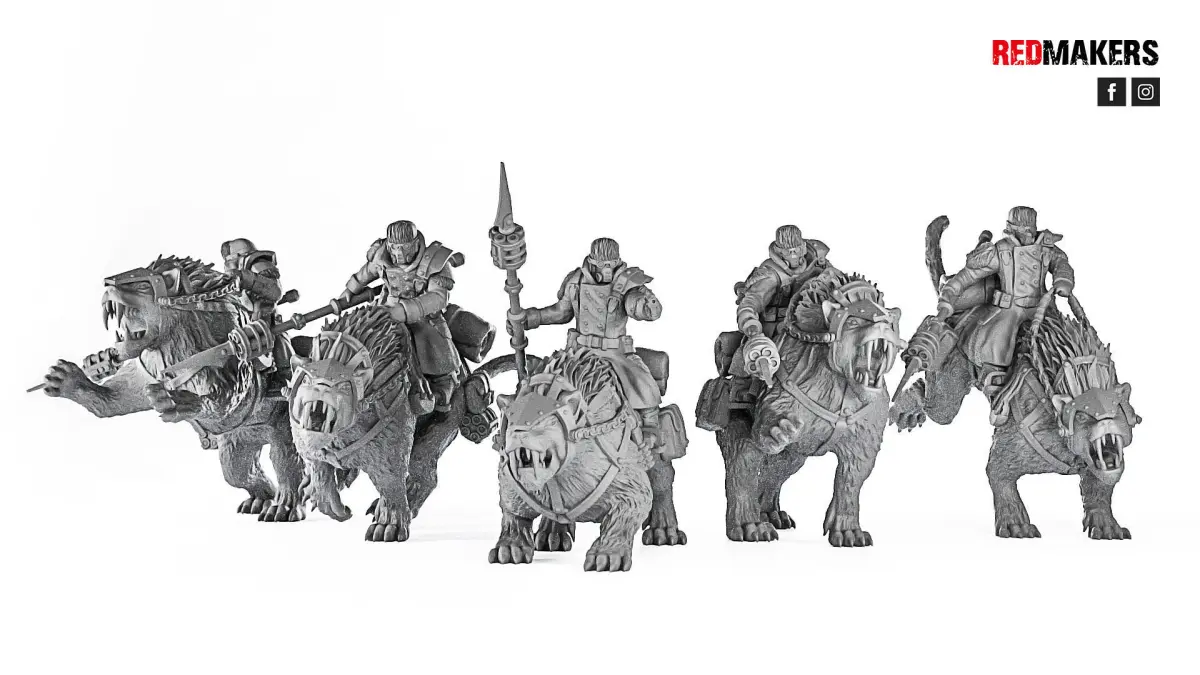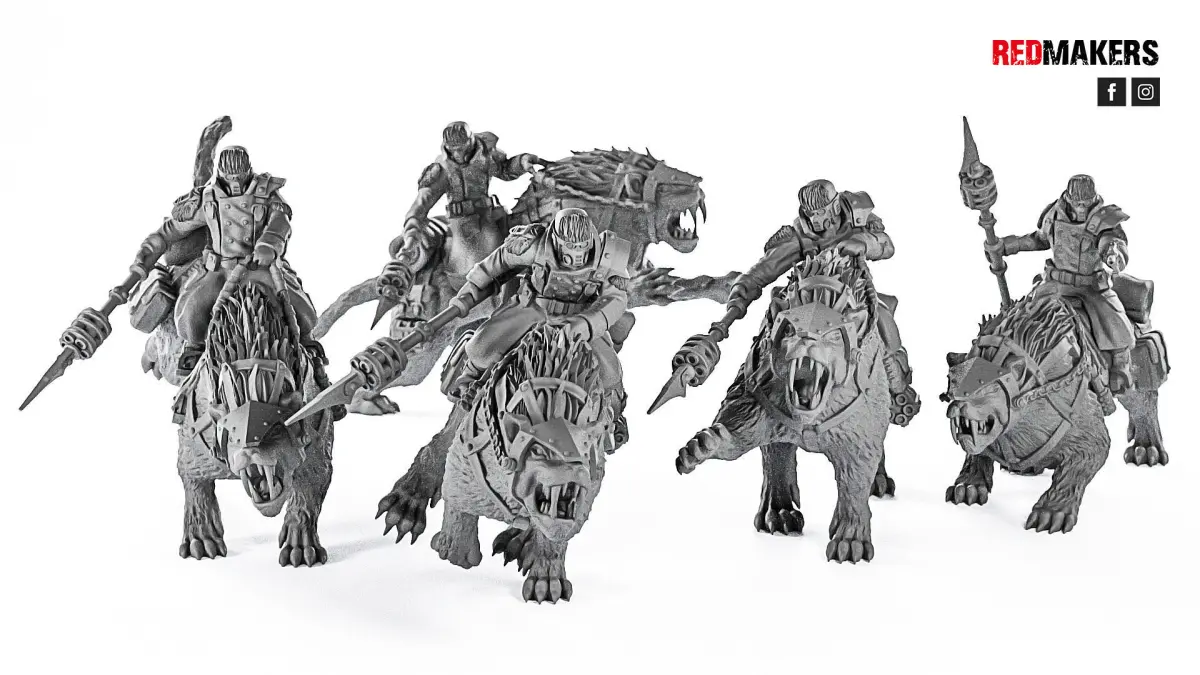 A squad of ice warriors riders consists of 5 units. One of them is a sergeant. Scaled for 28 mm tabletop.