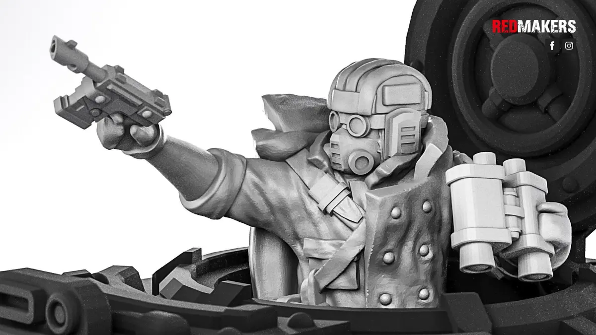 The tank commander is available in full height and two trim options. Scaled for 28 mm tabletop.