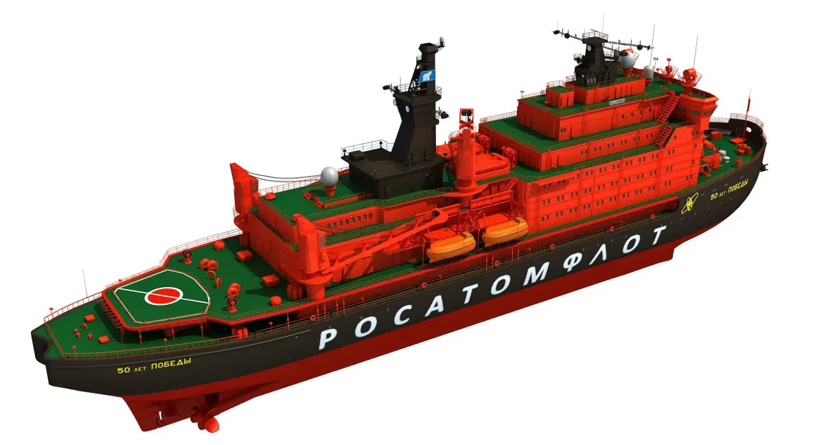 High resolution and fully detailed 3d model of the 50 Let Pobedy Russian Icebreaker, the largest nuclear-powered icebreaker in the world.