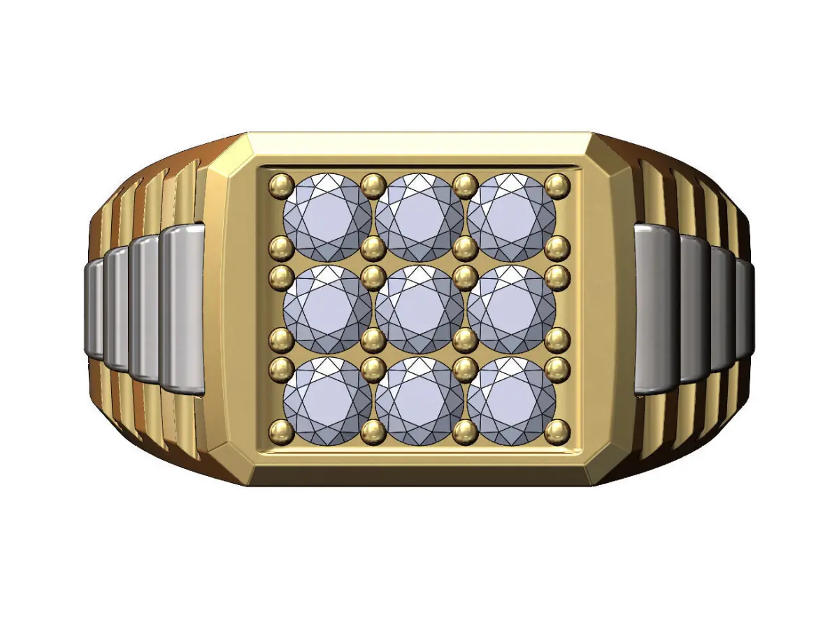 Iced diamond top presidential link inserts ring.