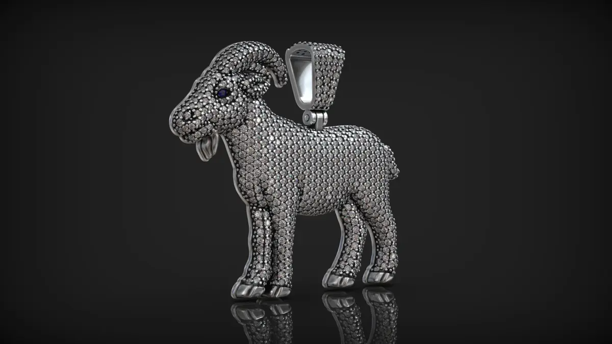 The model includes all fine elements, such as horns, hooves, and a detailed bail (loop), and is designed with optimal geometry for high-quality jewelry production in gold, silver, or other precious metals. Ideal for use in both physical manufacturing and digital rendering projects.