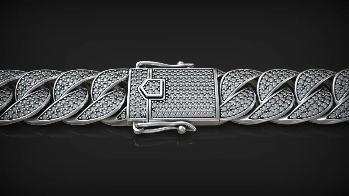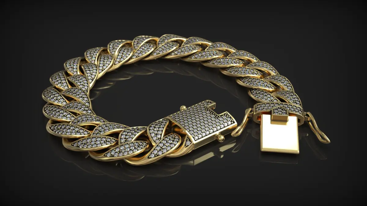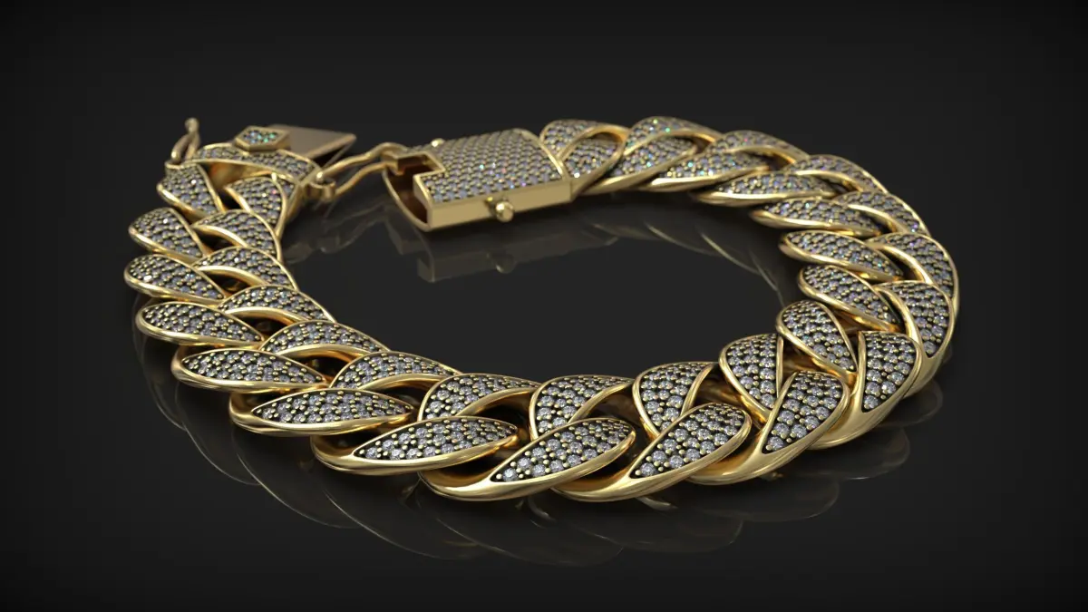 This is a high-quality 3D model of a luxury Cuban link bracelet featuring elegant micro pavé diamond settings. Designed with precision and optimized for jewelry visualization, prototyping, and manufacturing, this model is ideal for both rendering and 3D printing workflows.