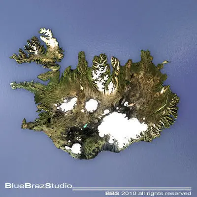 C4D file (obj-dxf-3ds) for a 3D relief map of the Iceland.All formats zip files has enclosed tex, material and maps. But it could need some texture reassigning.Polygons 9691Vertices 16209