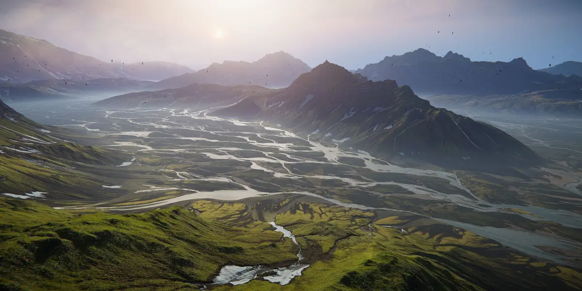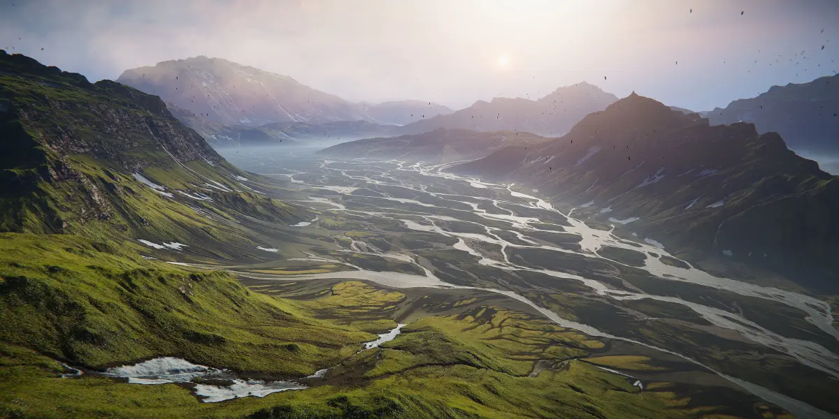 Scene with 3km*3km gameready terrain (normal/ao/color/diffuse/height).