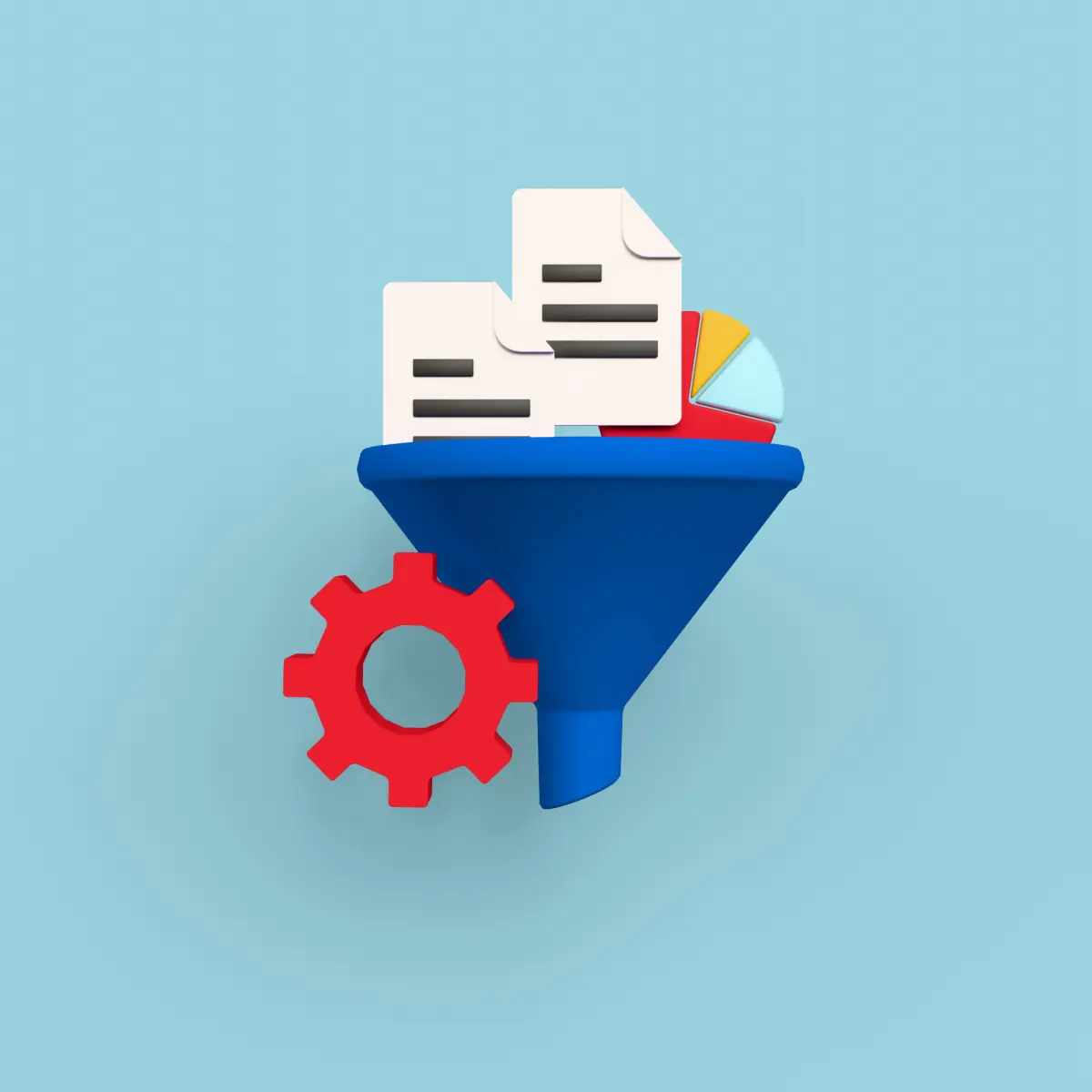 Data Analytics – Icons featuring bar charts, pie charts, and trend graphs suggest insights derived from data analysis.Cloud Computing – A cloud storage icon indicates cloud-based data storage and processing.Cybersecurity & Encryption – Padlock symbols on folders and servers highlight data security and encryption measures.Data Processing & Management – Symbols such as funnels, gears, and interconnected servers represent data filtering, processing, and system architecture.Artificial Intelligence & Machine Learning – A nucleus-like structure with red spheres implies AI-powered computing and scientific research.Server Infrastructure – Multiple icons depict data servers, illustrating cloud and local computing environments.