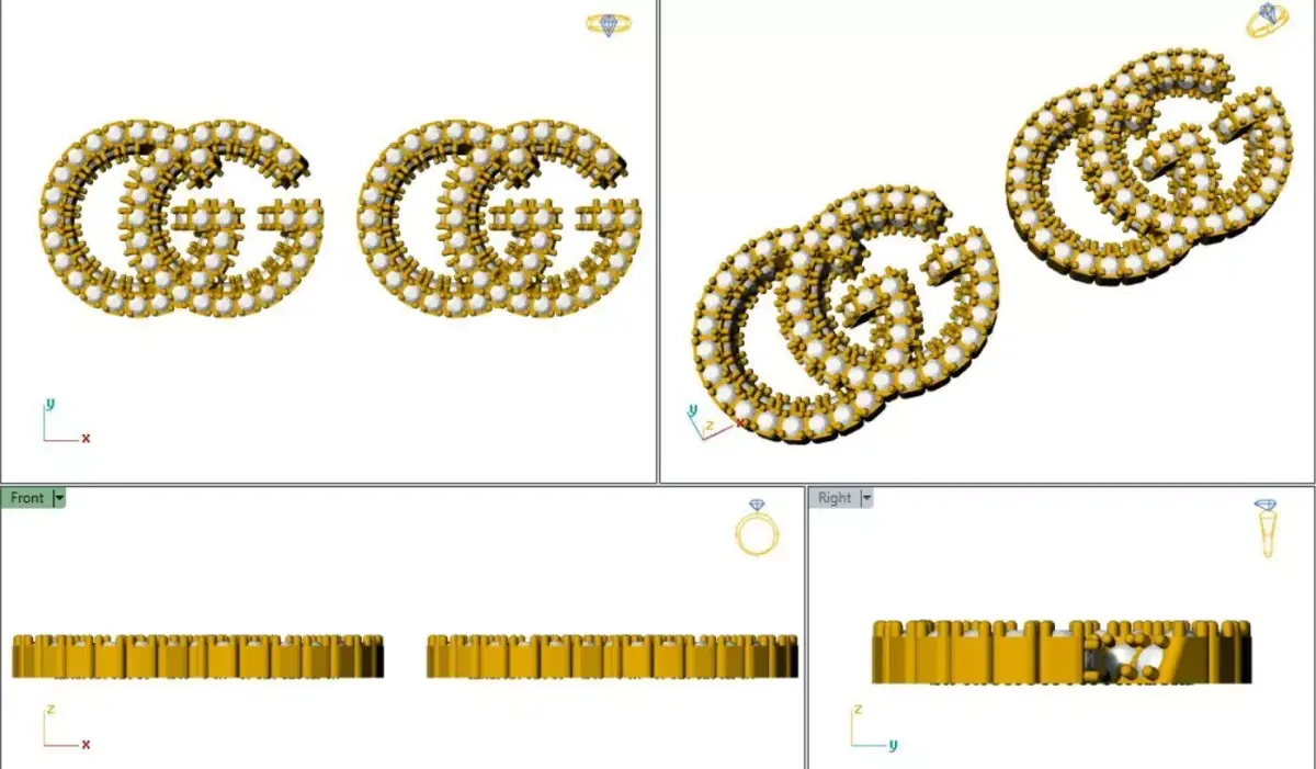This 3D gold diamond stud earrings model is designed with a premium double-letter style, fully encrusted with sparkling gemstones for a luxurious and modern look. It is ideal for jewelry designers, CAD modelers, and 3D artists looking for realistic and production-ready models.