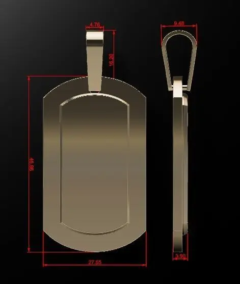 Pendant Dimensions: 46.98mm Length / 27.55mm Width / 3.90mm height