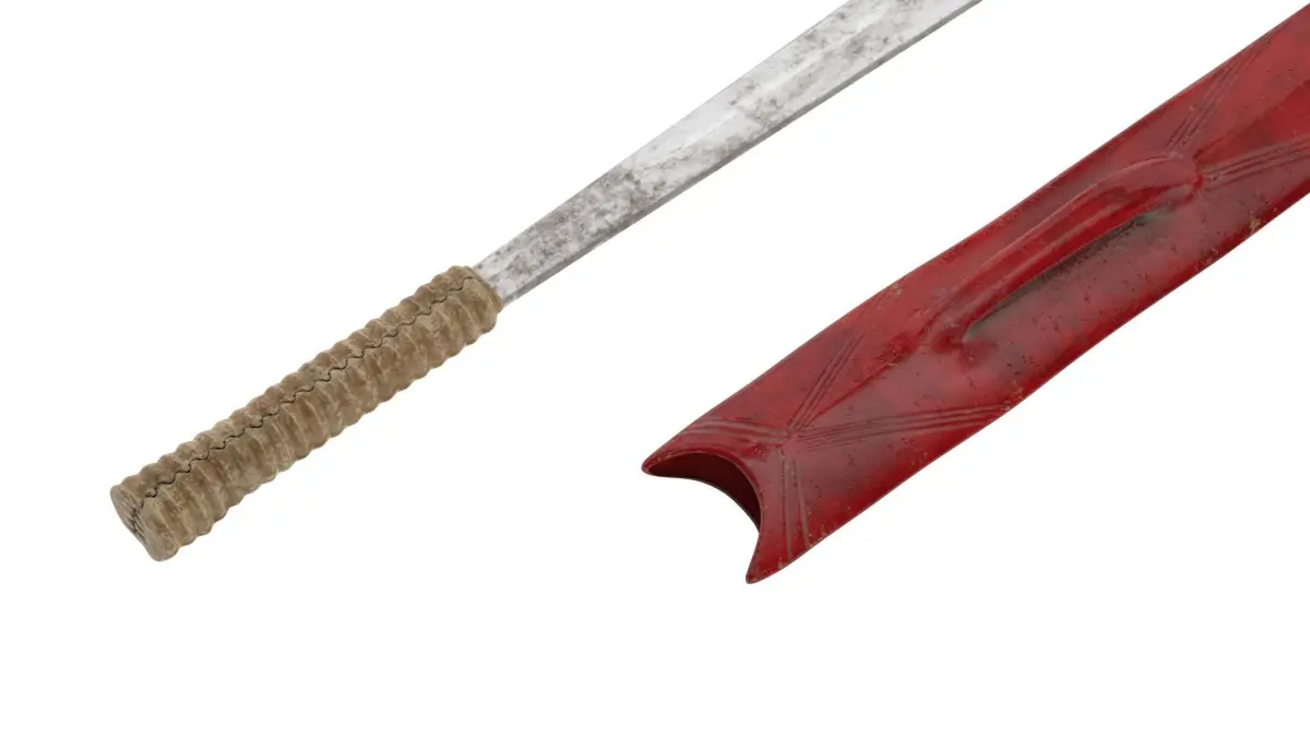 It is a long sword with a narrow to wide blade and sheathe. The sword is sharp, and cuts on contact but typically begins to dull if not sharpened regularly. It can be single-edged or double-edged. These blades are typically heavier by the tip of the blade.Hi I am Frezzy from Vnvisual studio.