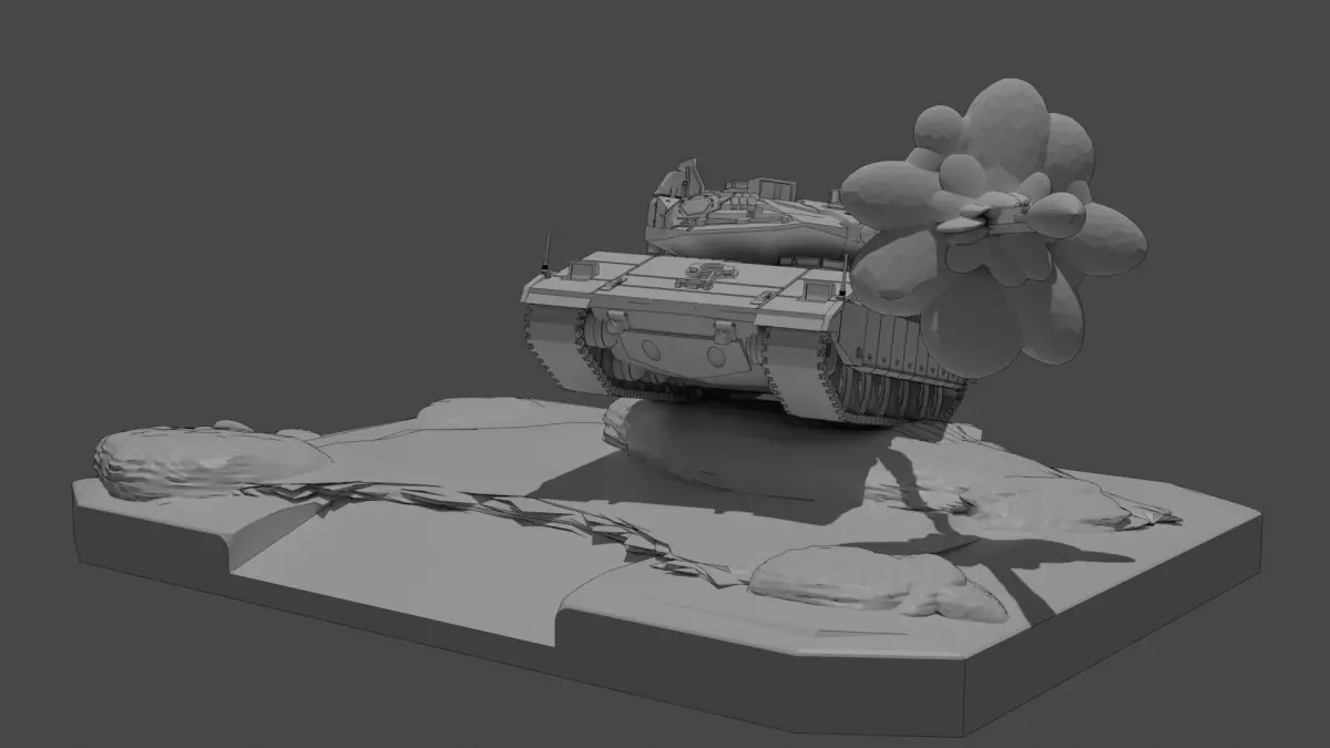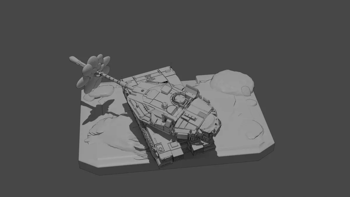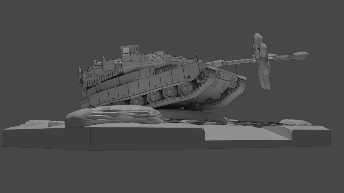 A diorama of the IDF Merkava 4M jumping while shooting.The diorama can be printed in one piece or seperated to individual objects for ease of print.Can be used as a great personal gift by modifying and inserting text on the plate.Hope you like it.