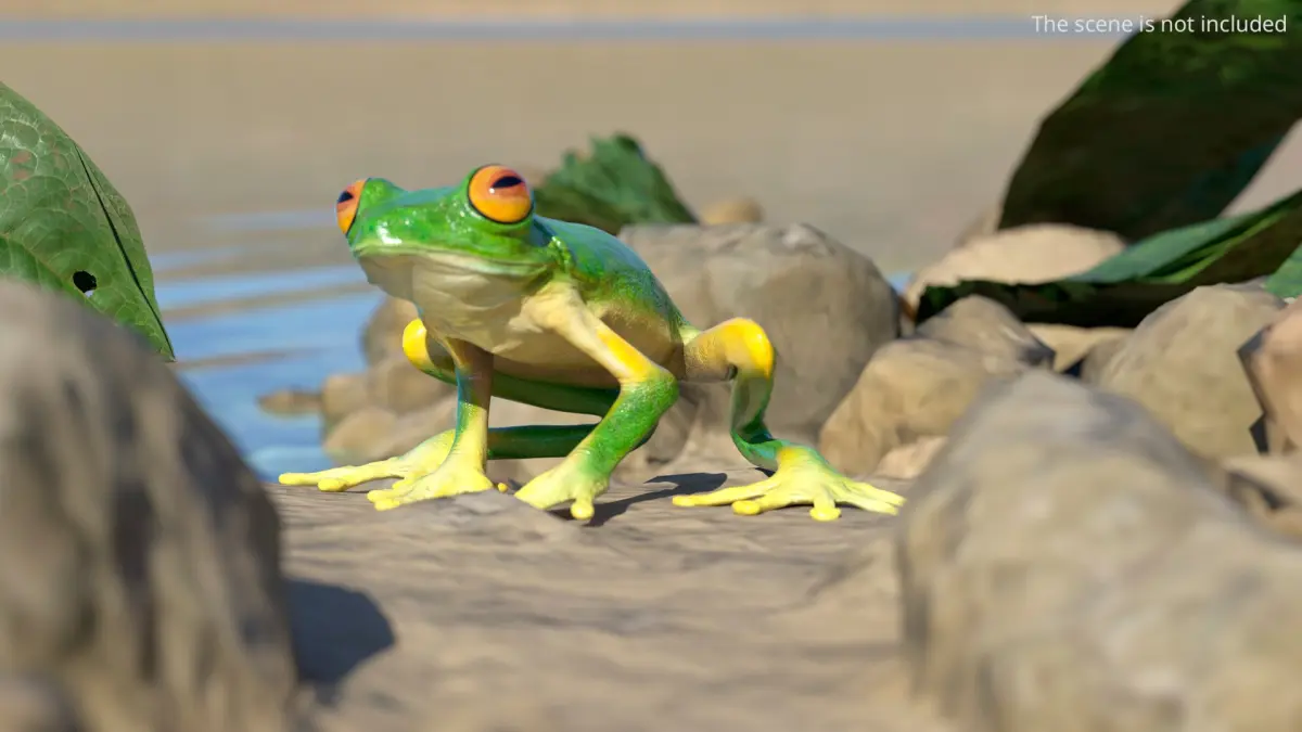 Idle Tree Frog Animated Rigged for Blender is a three-dimensional model of small arboreal amphibian known for its adhesive toe pads and vivid coloration.