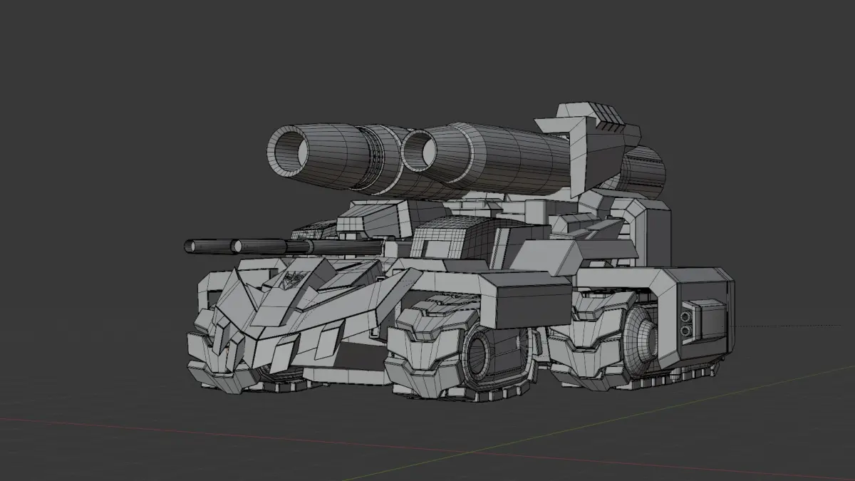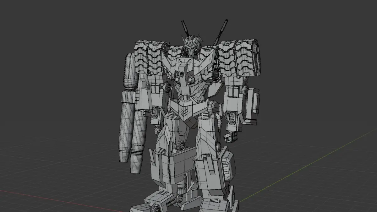 The complete transformation animation shown in the preview is included in the .blend file. There is also a basic lighting and background setup. Unfortunately THE TRACKS ARE NOT RIGGED TO FUNCTION IN THE VEHICLE FORM. Although it should be easy enough to figure out.