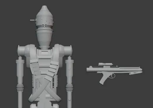 The IG 11 and blaster were modeled with Blender and textured with Substance Painter. All texture files are available in textures.zip folder. If you find anthing missing or have any questions please drop me a message.
