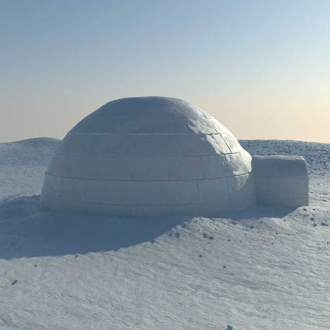 DETAILED 3D MODEL SCENE OF AN IGLOO;