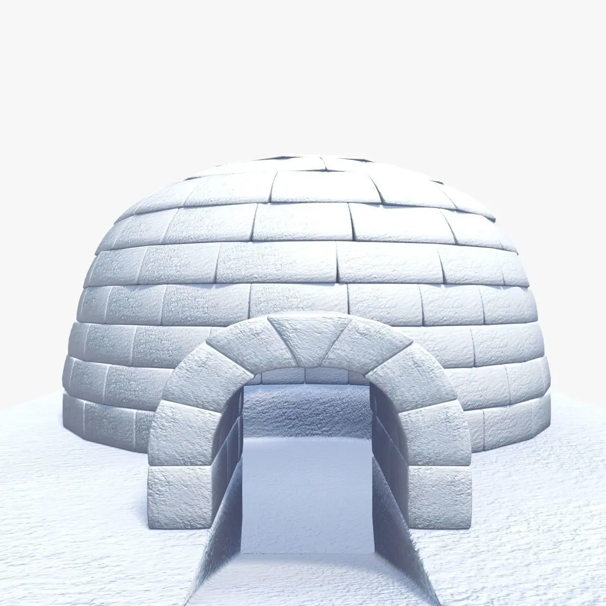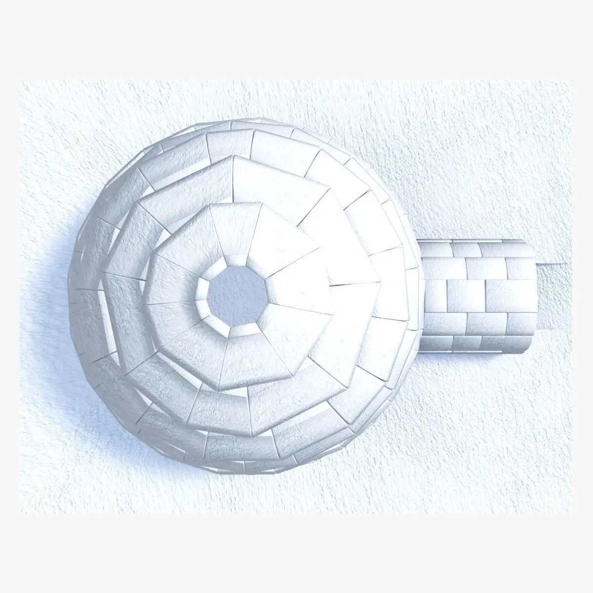 3D model of an igloo modelled in Blender v2.70a. The model is completed of materials and textures.The igloo is placed on a small plane.You can find the UV Layout in the ZIP - see folder 'UVLayout'.