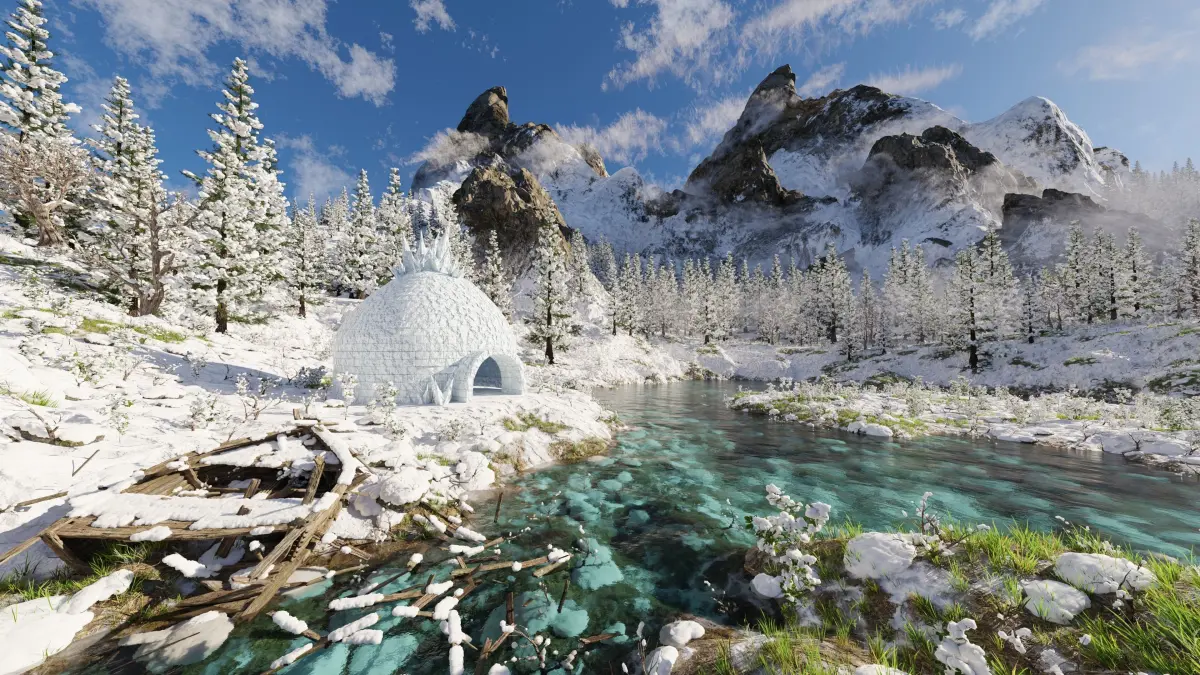 Igloo Snow landscape Scene Made In Blender3D v3.3.