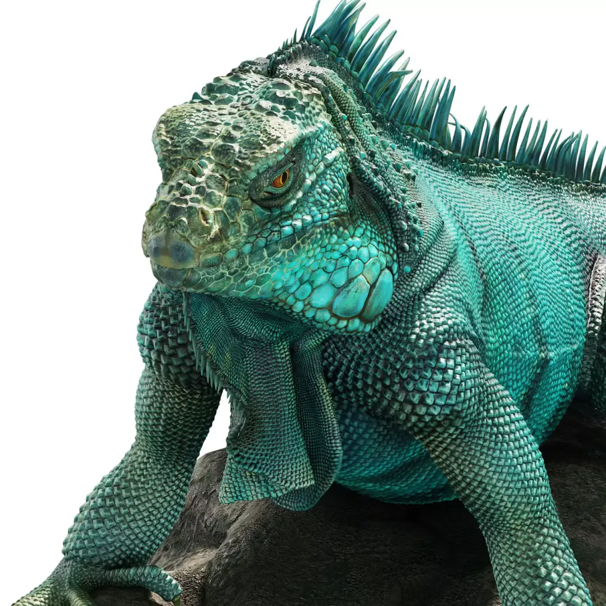 Highly detailed 3D model of a green iguana.Created from scratch in ZBrush, painted with Polypaint.The model was finalized and rendered in 3ds Max using V-Ray.Suitable for close-up rendering.4K textures, static pose without rigging.