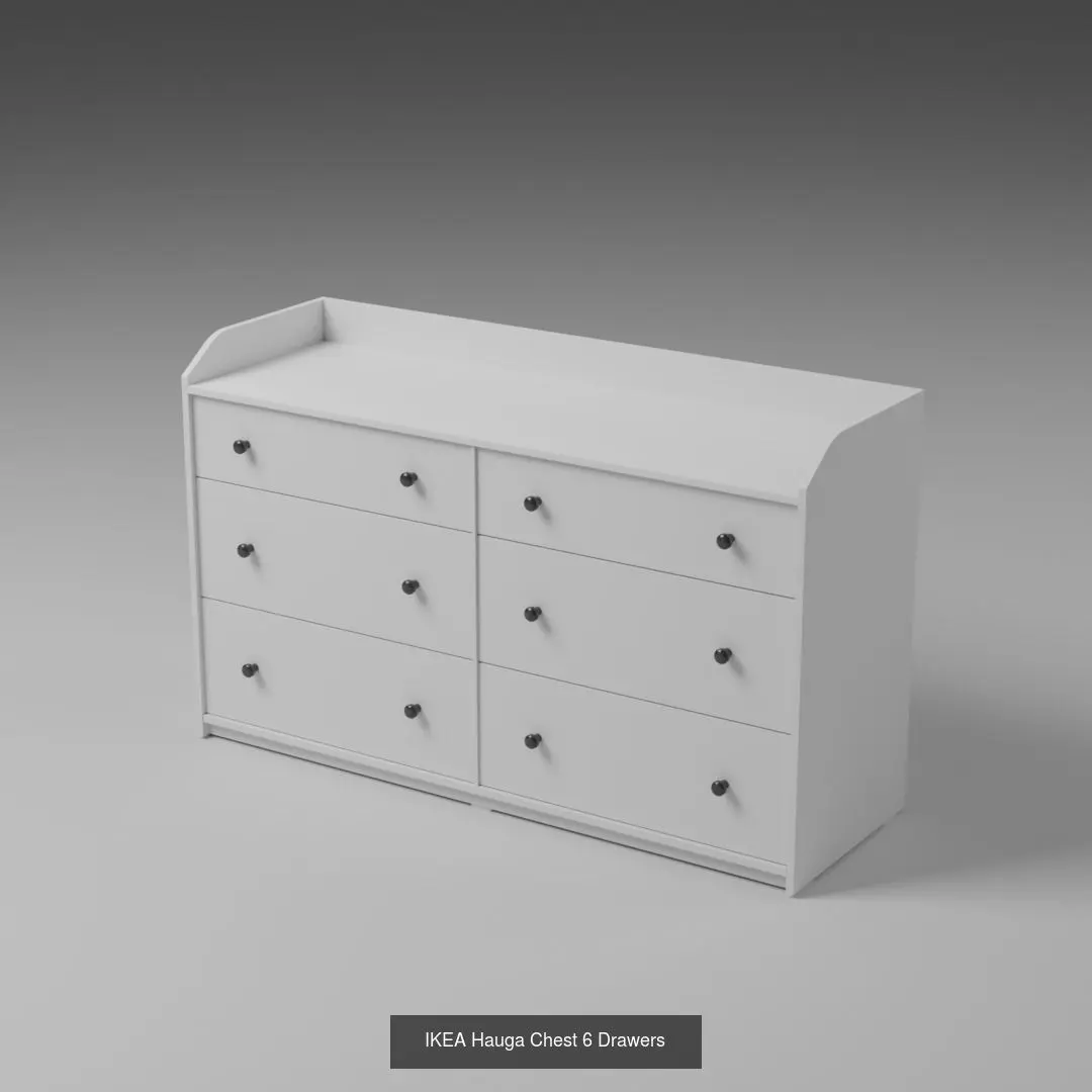 3D assets inspired by IKEA Hauga Collection including drawers, cabinets, desk, and wardrobes