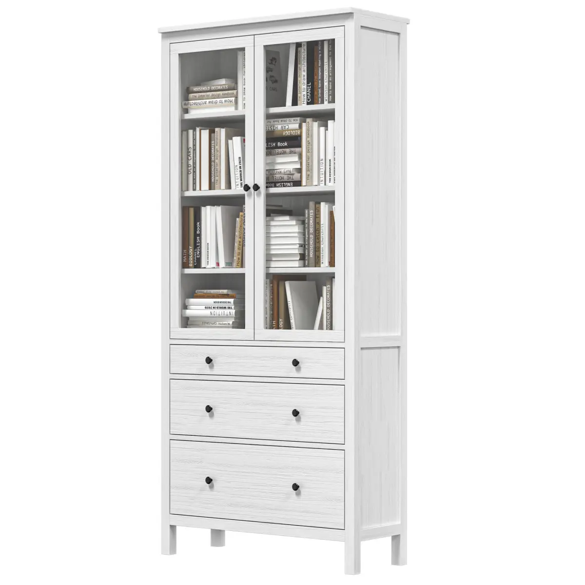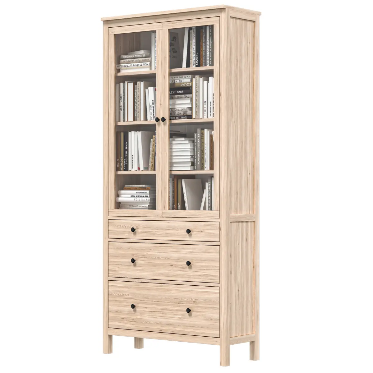 - IKEA - HEMNES Cabinet with glass door and 3 drawers with books