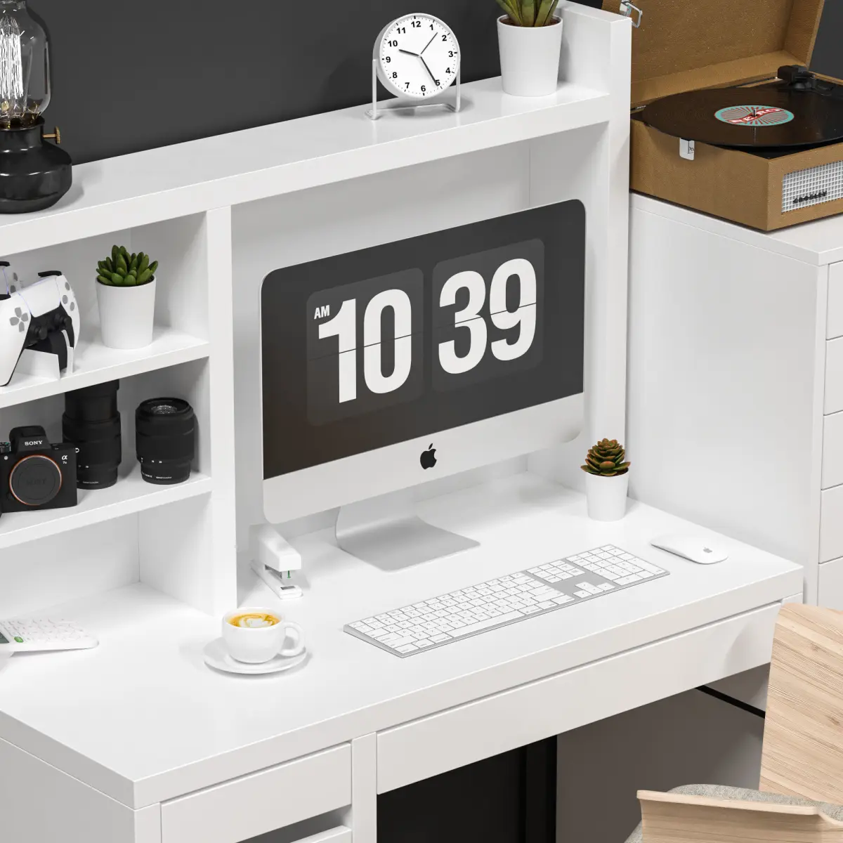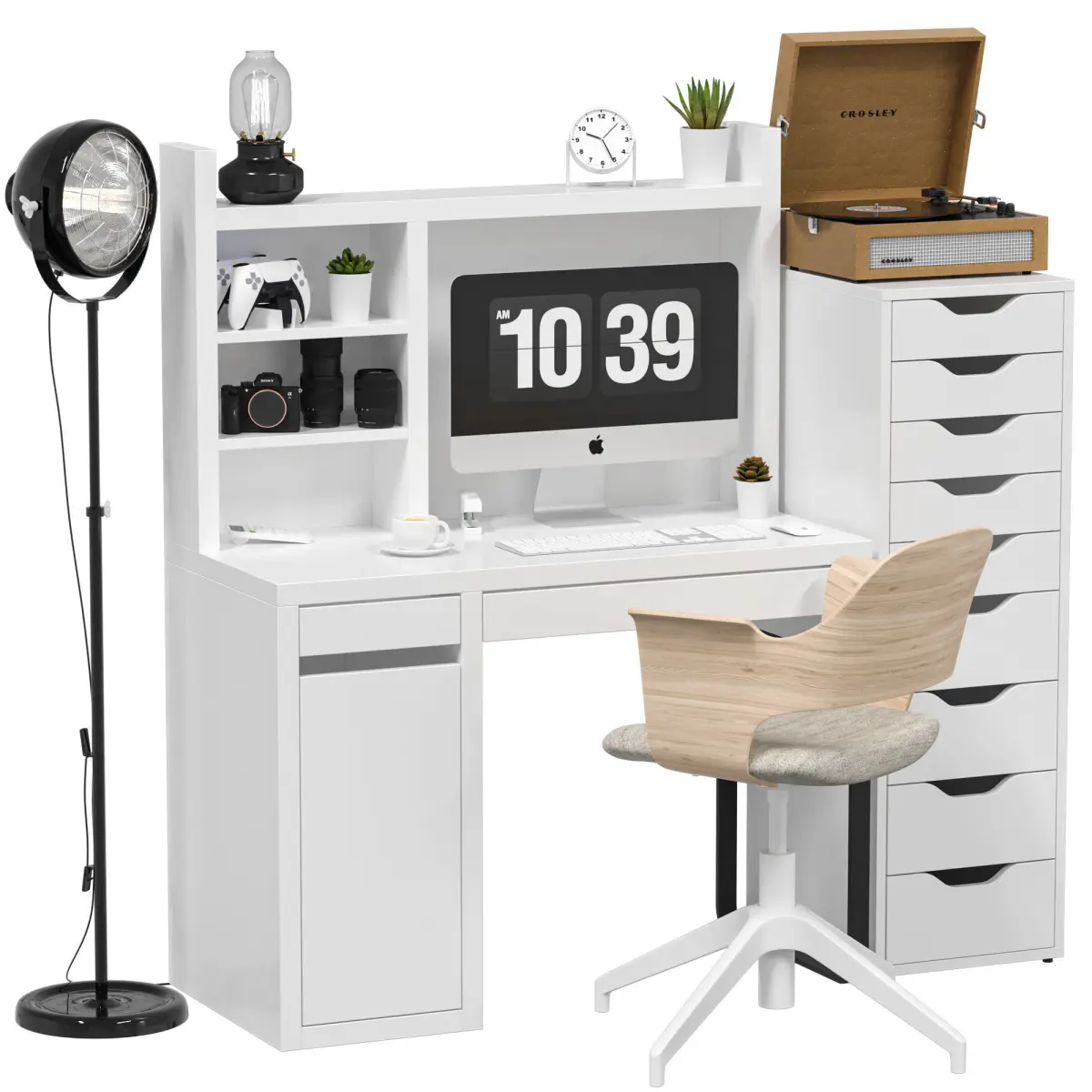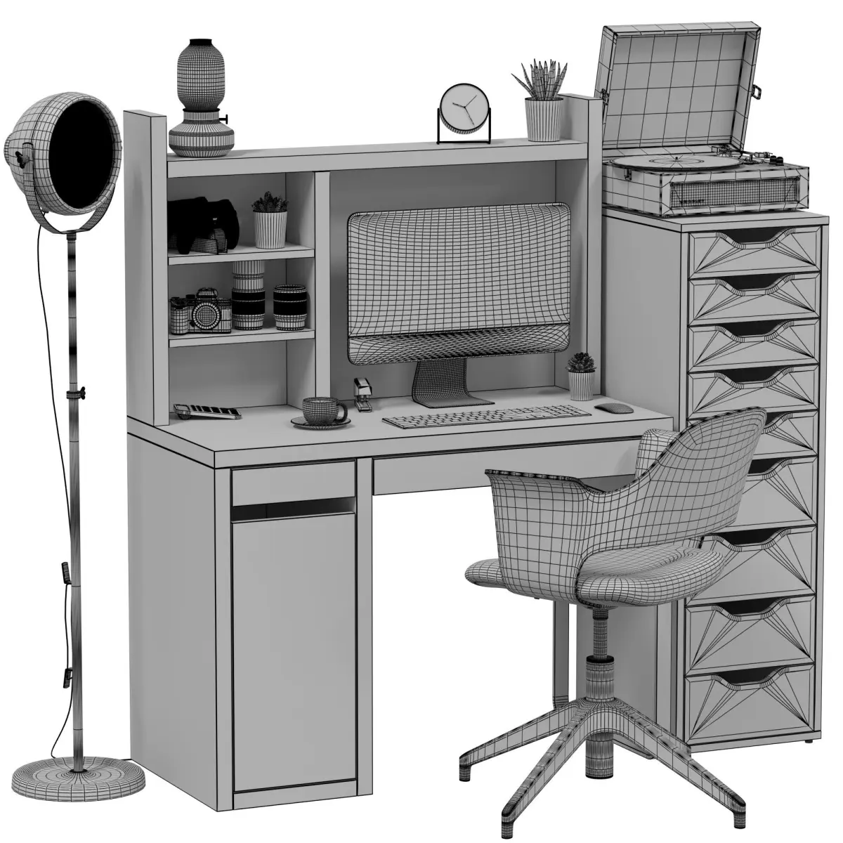 - 19 elements have TurboSmothhigh, wooden, storage, modern, desk, working, office, ikea, table, computer, chrome, desktop, lamp, desk, lamp, calculator, working, place, computer, armchair, decor, organizer, office, epl, computer, personal, studio, stapler, stationery, ruler, paper clip, planer, multi-colored, pencils, branch, plant, vase, tree, ceramics, glass, chair, cross, game, office equipment, office, office, technique, desktop, supplies, office, gadget, book, beige, library, shelf