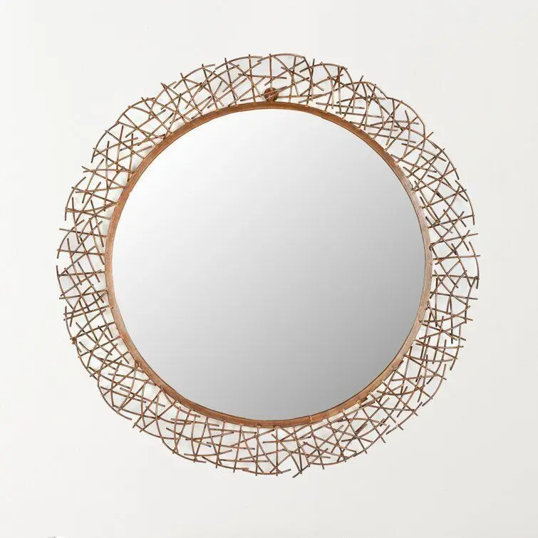 - Fragile twigs crafted from iron lend a contemporary air to this artful mirror. This updated version of the starburst design would be at home in the entryway, living room, and bedroom. Perfect for drawing attention to your accent wall, it equally suits both contemporary and rustic decor.