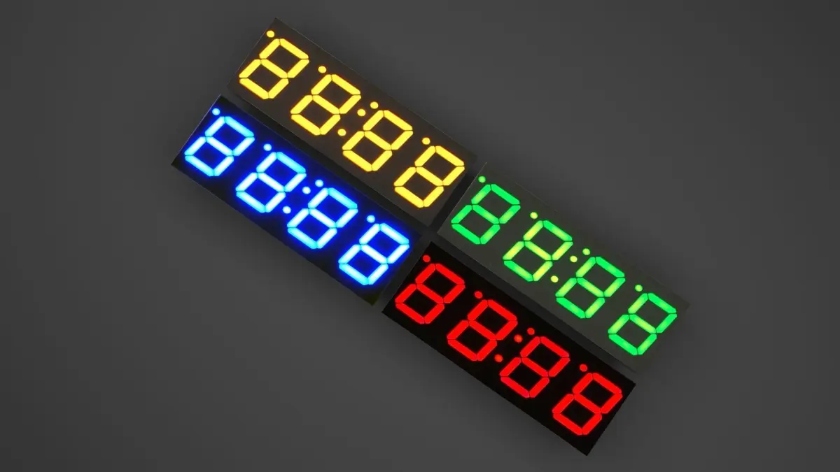DescriptionDescription Description Description Detailed model of a clock 7-segment LED Display modules set - XPresso-controlled with user-data menu Can show numbers / digits from 0 to 9 and letters from A to F and a minus (-). You can hide or erase the block and pins and only keep the segments in order to use it in other devices if You wish. The clock 7 segmented LED is used to show the time. Of course You can change all colors/materials. Suited for any electronic device like clocks, counters, elevators, signs, cockpits, etc. (You don´t HAVE to use the Expresso control and are free to show even other letters or signs.) Exchange files have of course NO script control!