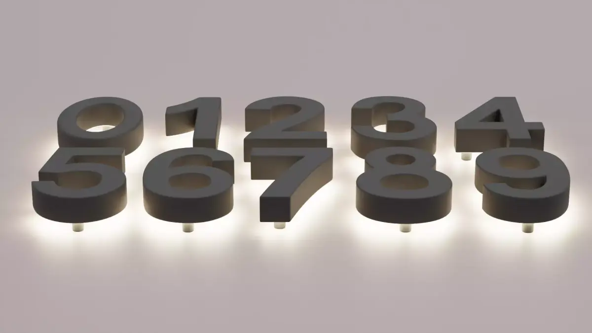 A complete set of 3D illuminated numbers (0–9) designed with a clean, modern aesthetic suitable for signage, interior, or product visualizations. Each number features a rear cylindrical mount, allowing it to be positioned slightly away from the surface - creating a subtle, realistic backlit effect that enhances depth and visual appeal. The set combines minimal geometry with high-quality shading for a professional, versatile look adaptable to a variety of lighting setups.