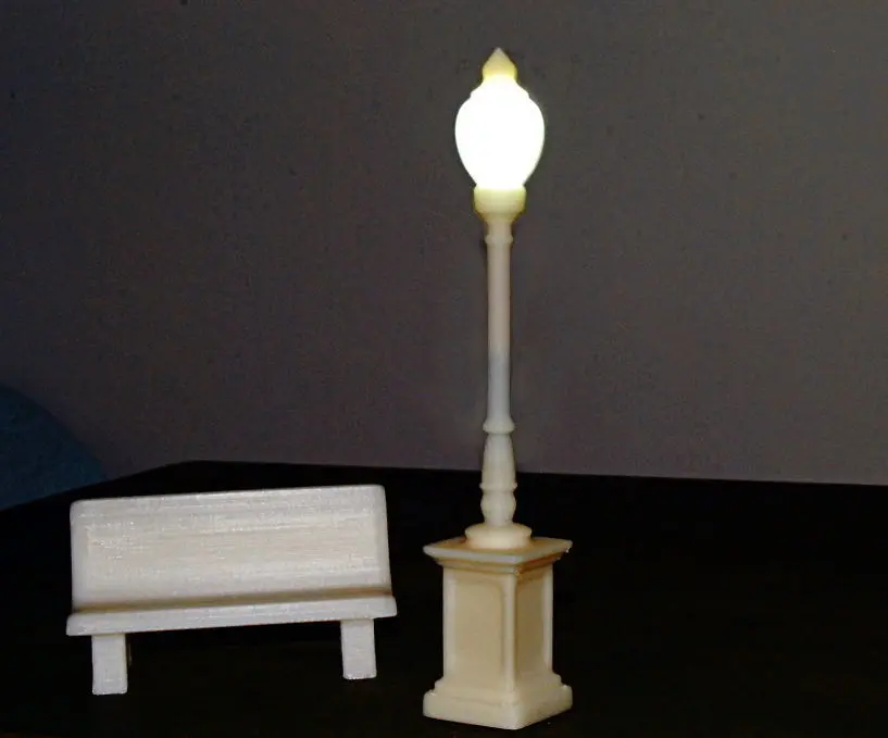 With a simple diode led, a wire and a battery the lamp turns into a working light for scale models: The bulb screws around pole threads, and a diode led fits inside the head.