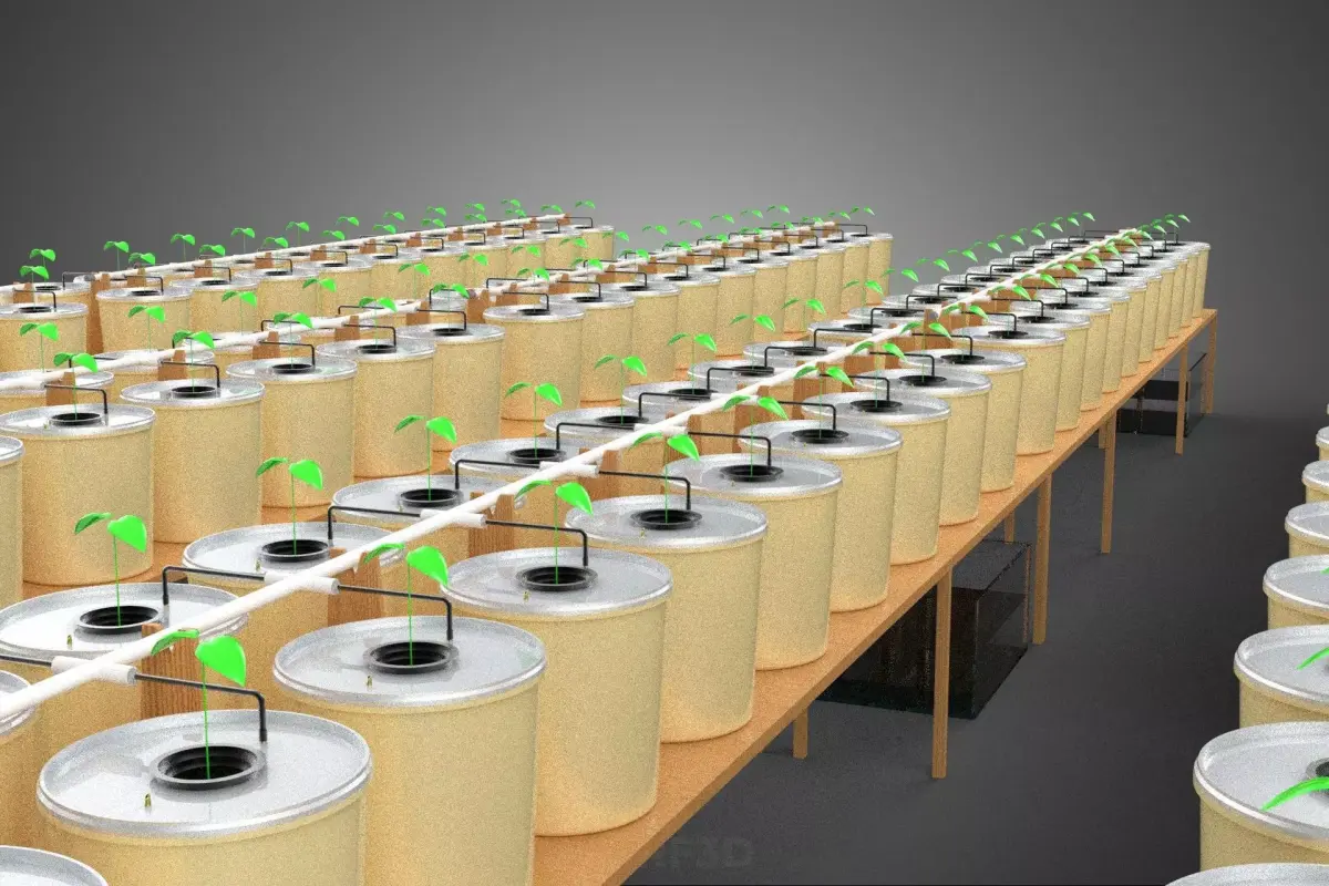 - Nutrient Delivery: A submersible pump draws the oxygenated, pH-balanced nutrient solution from a central reservoir. This solution is distributed through a primary manifold and regulated by individual drip emitters, which pulse the solution directly to the root zone of the plant within each bucket at predetermined intervals.