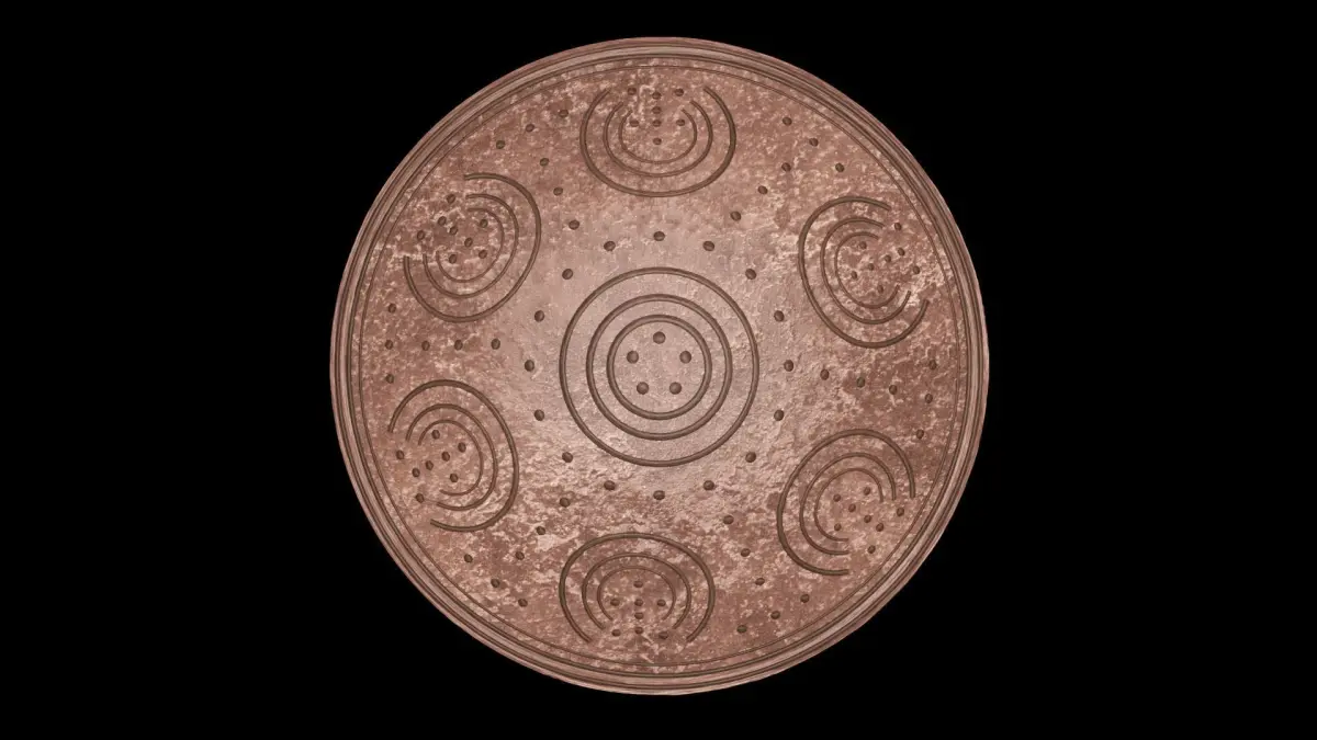 Illyrian Bronze Sun Shield with all the details, all parts are divited in 3 categories:BaseBolts and CirclesBack Handle