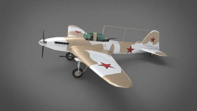 The 3D model of the Ilyushin Il-2 Sturmovik beautifully renders the legendary Soviet ground-attack aircraft, known as the Flying Tank for its armored protection and durability. This model highlights the aircraft's robust design, including its thick, armored fuselage and the distinctive underwing gun pods that housed powerful cannons. The cockpit is intricately detailed, reflecting the cramped yet functional space that pilots relied on during intense combat missions. This 3D representation brings to life the Il-2's crucial role in supporting ground forces on the Eastern Front, making it an essential piece for enthusiasts of military aviation history.