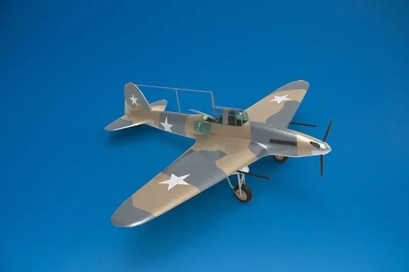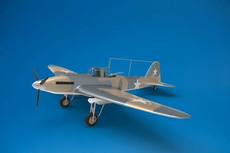 The 3D model of the Ilyushin Il-2 Sturmovik beautifully renders the legendary Soviet ground-attack aircraft, known as the Flying Tank for its armored protection and durability. This model highlights the aircraft's robust design, including its thick, armored fuselage and the distinctive underwing gun pods that housed powerful cannons. The cockpit is intricately detailed, reflecting the cramped yet functional space that pilots relied on during intense combat missions. This 3D representation brings to life the Il-2's crucial role in supporting ground forces on the Eastern Front, making it an essential piece for enthusiasts of military aviation history.